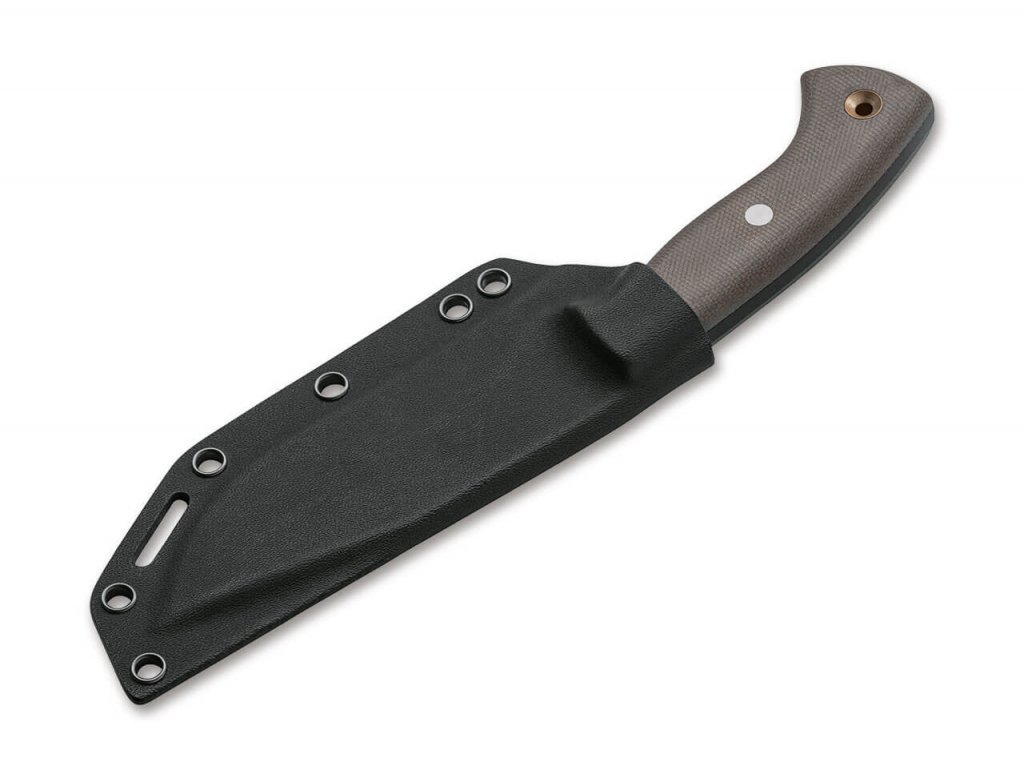 A Böker Plus Mini Tracker egy kés a természetbe, masszív, vastag pengével, amely még a nagyon kemény kezelést is kibírja. Kombinált élezéssel rendelkezik, amely aprításra és vágásra alkalmas. A penge 1095 szénacélból készült, hossza 13,5 cm, fekete porbevonattal. A fekete micarta markolat ergonomikus kialakítású, és nagyon jól illeszkedik a kézbe. A késhez fekete kydex tok és övcsipesz tartozik.