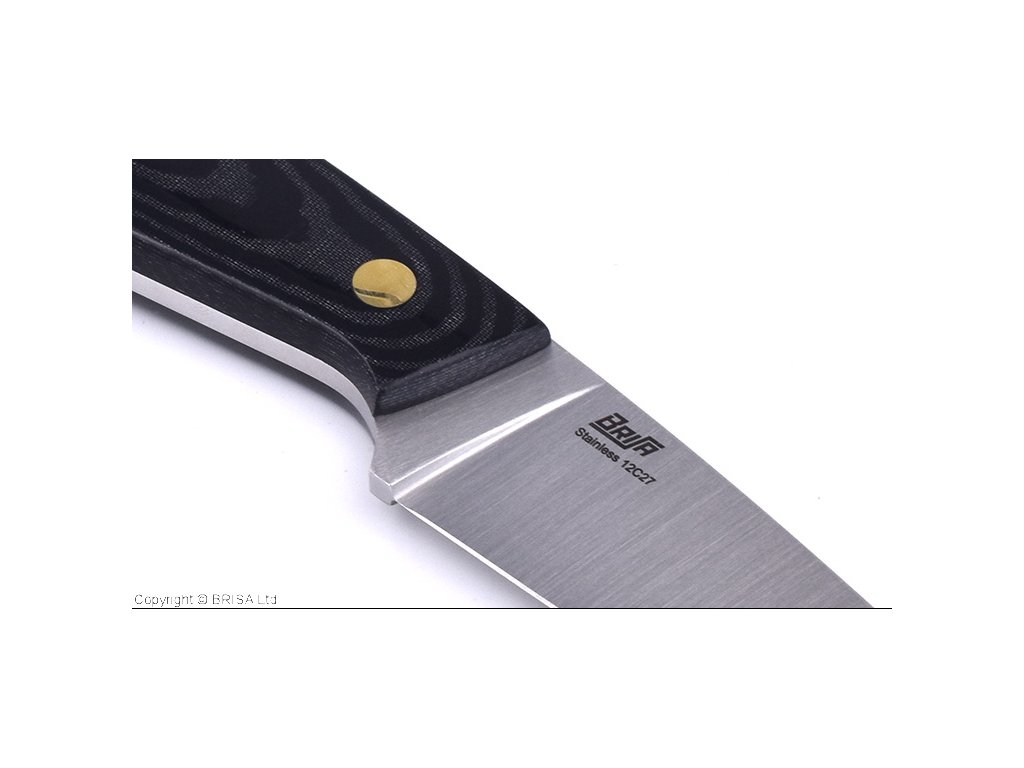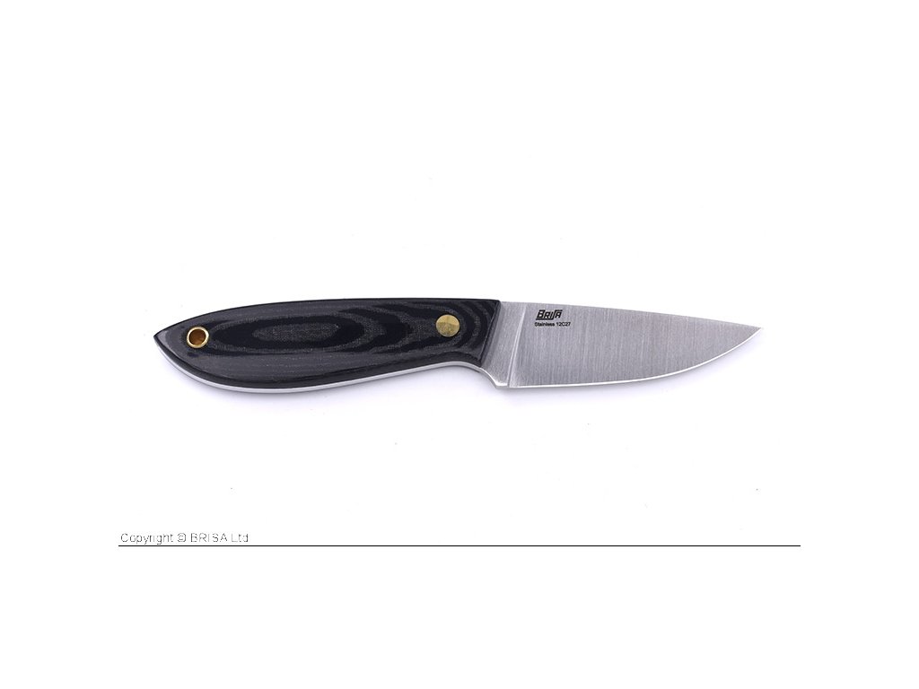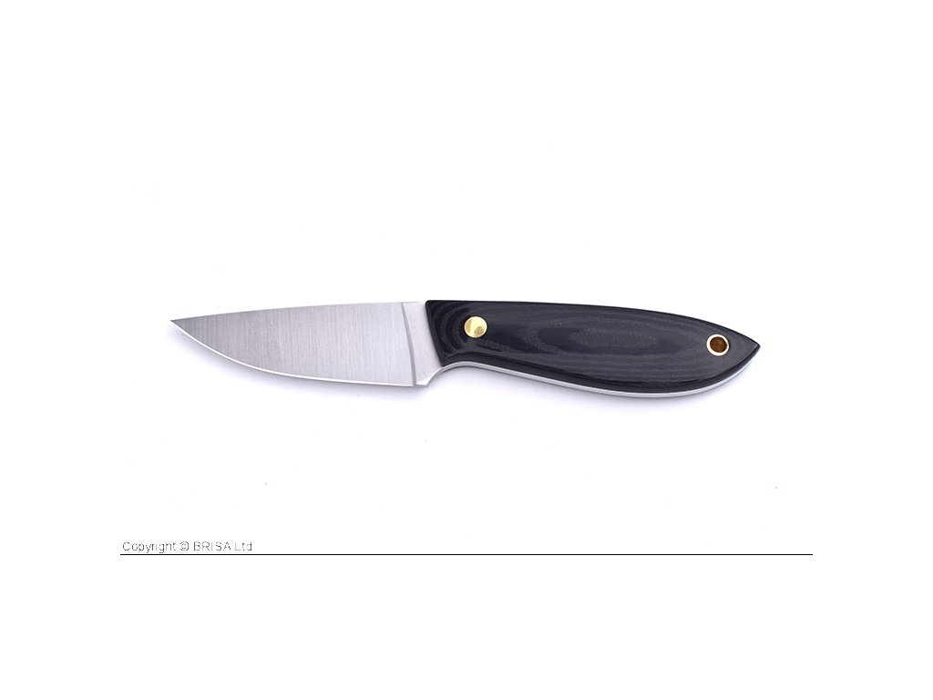 A Brisa Bobtail egy kisebb kés, rögzített pengével, túrázáshoz, utazáshoz, alkalmi hordozáshoz vagy kisebb fogások feldolgozásához. 8 cm hosszú penge Sandvik 12C27 rozsdamentes acélból, lapos élezésű. Fekete micarta markolat, kydex tokkal.