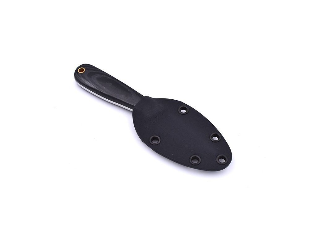 A markolat fekete micarta anyagból van. A markolat lapjai réz szegecsekkel vannak rögzítve. A markolat hossza 9 cm. A markolat végén zsinórfurat (lanyard tube) található. A kés teljes hossza 16 cm. Tartozéka egy kydex tok.