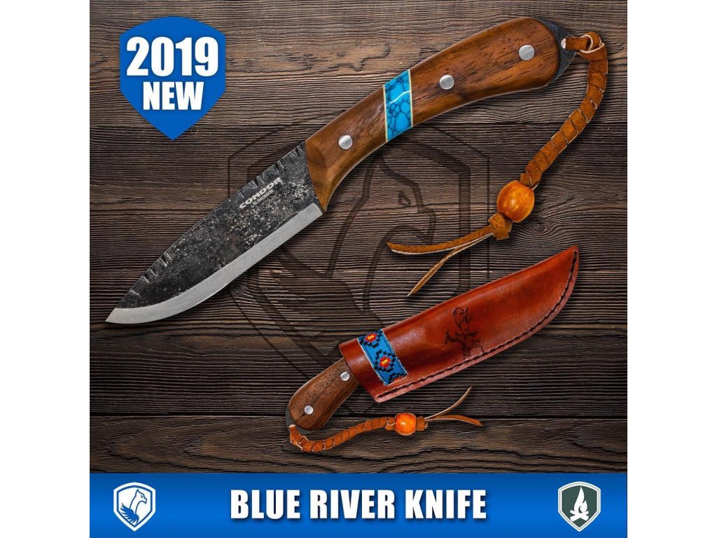 A Condor Blue River Knife nevét a Blue River, a Colorado folyó mellékfolyójától kapta, amelynek partjain az indián "Arapaho" törzs lakott. A Blue River kések sorozata tisztelettel adózik ennek a törzsnek a kultúrájának és kiváló vadászkészségének. A Blue River nyele beágyazott rekonstruált türkizkővel van, amely hasonlít az Arapaho törzsre jellemző türkiz ékszerekre. A Condor Blue River kés full tang. A 11 cm hosszú penge 1095 szénacélból készül és skandináv élezéssel rendelkezik. A barázdák a penge hátsó részén segít a finom vágásban. Diófából készült markolat a behelyezett türkizkővel kényelmesen tartható. Minőségi, kézzel varrott bőrtok jár hozzá.