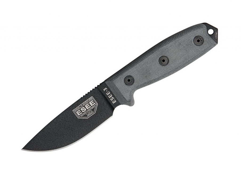 Az ESEE Model 3 egy fix kés, amely nagyon népszerű az katonák és rendőrök között. A 9,8 cm hosszú, 1095 szénacélból készült penge fekete bevonattal és lapos élezéssel rendelkezik. Mivel szénacél, a penge hajlamos korrodálódni és elkapni a patinát, különösen a késen és azokon a helyeken, ahol a felületi bevonat idővel megtörik. Ezért ajánlatos az acélt olajjal kezelni. A kés üvegtörővel van felszerelve. Fekete len micarta markolat. Fekete műanyag tok kapcsos akasztóval és MOLLE platform.