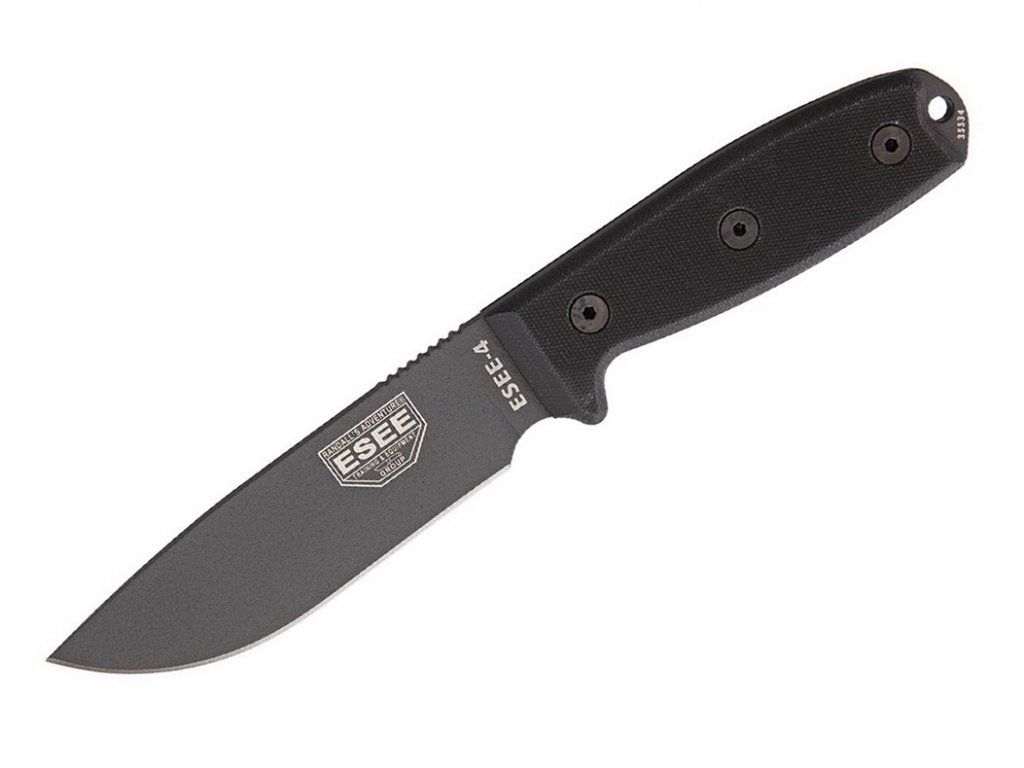 Az ESEE Model 4 az ESEE egyik legnépszerűbb modellje, és méretének köszönhetően a leguniverzálisabb modell is. Az 1095 szénacélból készült, 11,4 cm-es penge Gunsmoke típusú fekete bevonattal és lapos élezéssel rendelkezik. Mivel szénacél, a penge hajlamos korrodálódni és elkapni a patinát, különösen a késen és azokon a helyeken, ahol a felületi bevonat idővel megtörik. Ezért ajánlatos az acélt olajjal kezelni. Markolat fekete G10-ből. Fekete műanyag tok kapcsos akasztással.