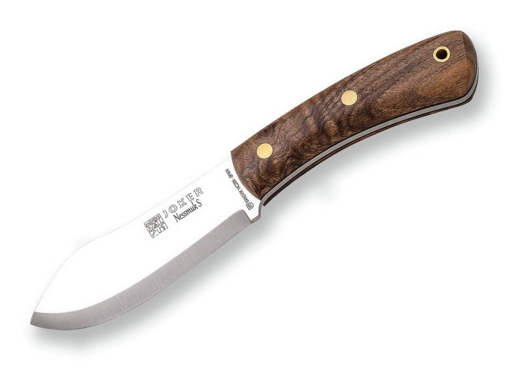A Joker Nessmuk egy közepesenméretű outdoor kés. Ez egy univerzális kés erdőbe, amely minden tevékenységgel megbirkózik. A kés nem tartalmaz felesleges részleteket, minden adaptálva van a maximális funkcionalitáshoz a természetben. A full tang konstrukciója biztosítja, hogy erős és megbízható. A penge Sandvik 14C28N rozsdamentes acél, matt felületkezeléssel, hossza 11 cm scandi leélezéssel. Diófa markolata a kés igazi ékessége. A késhez kiváló minőségű bőrtok tartozik, amely lehetővé teszi a magas és alacsony felfüggesztését az övre.
