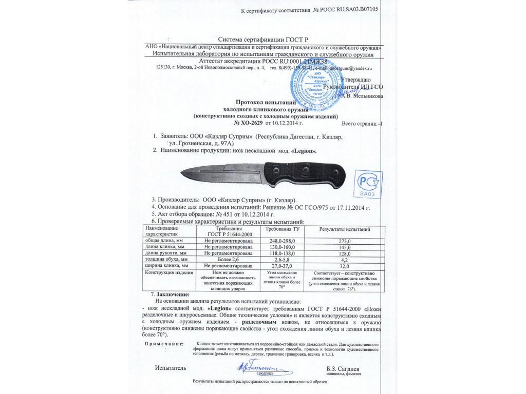 Nagyméretű outdoor kés, full tang konstrukcióval (egy darab acélból). D2 szerszámacél penge, keménysége 60-62 HRC, TacWash (szürke stonawash) felületkezeléssel. A penge alakja meghatározza, hogy a kés hatékony szúráshoz és olyan munkához, ahol szükséges a kés hegyes éle. A kés elsősorban a mentő- és haderőelemeknek alkalmas, de vadászok számára és a természetben történő túléléshez is kiválóan alkalmas. A markolata G10 anyag- modern kompozit anyag, nagyon ellenálló és kellemes tapintású. A késhez nylon-műanyag tok tartozik, amely kompatibilis a Molle rendszerrel.