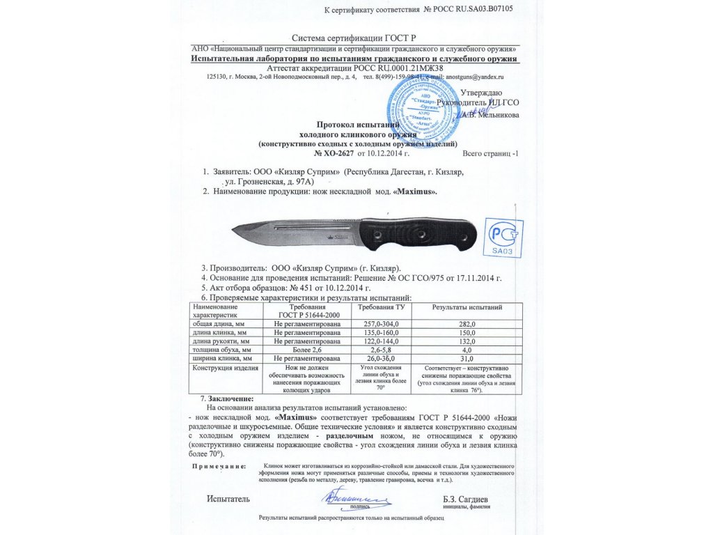 Kizlyar Supreme Maximus bushcraft kés