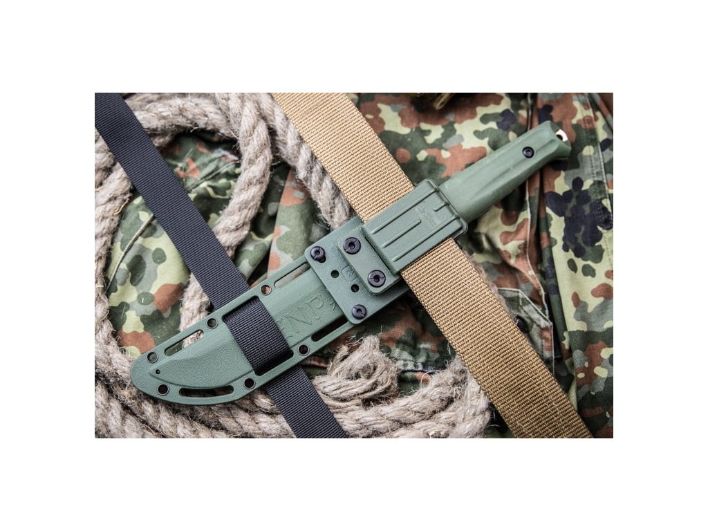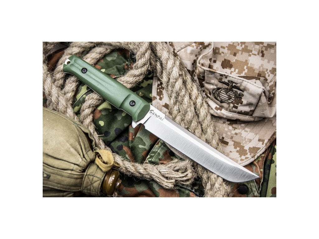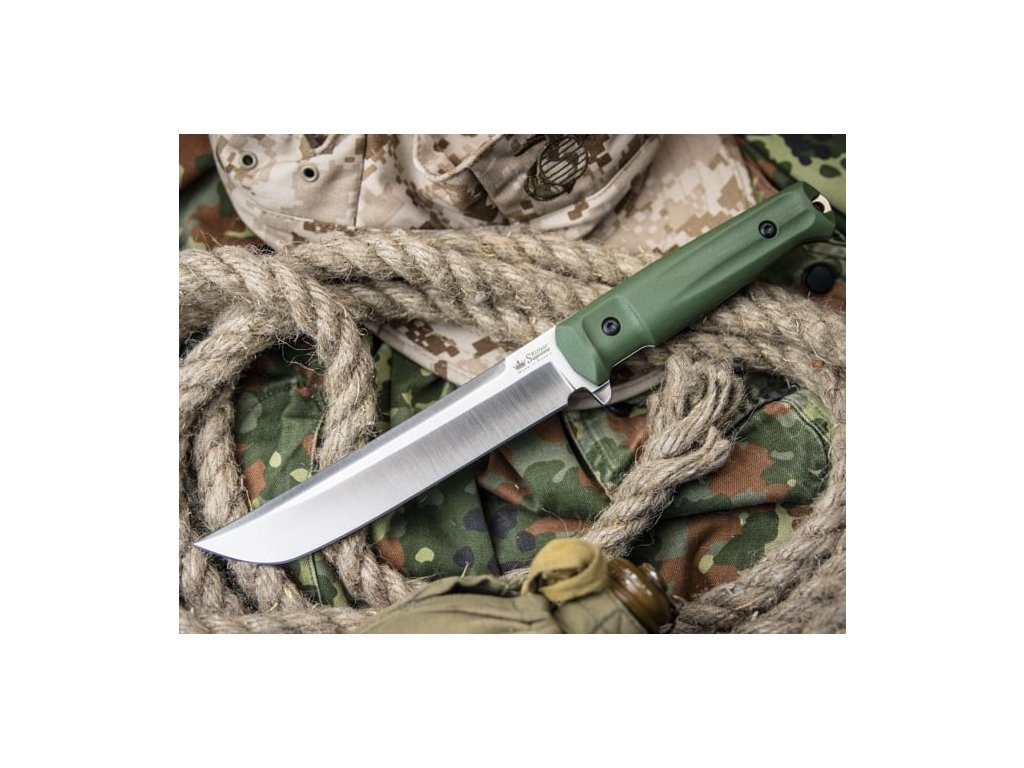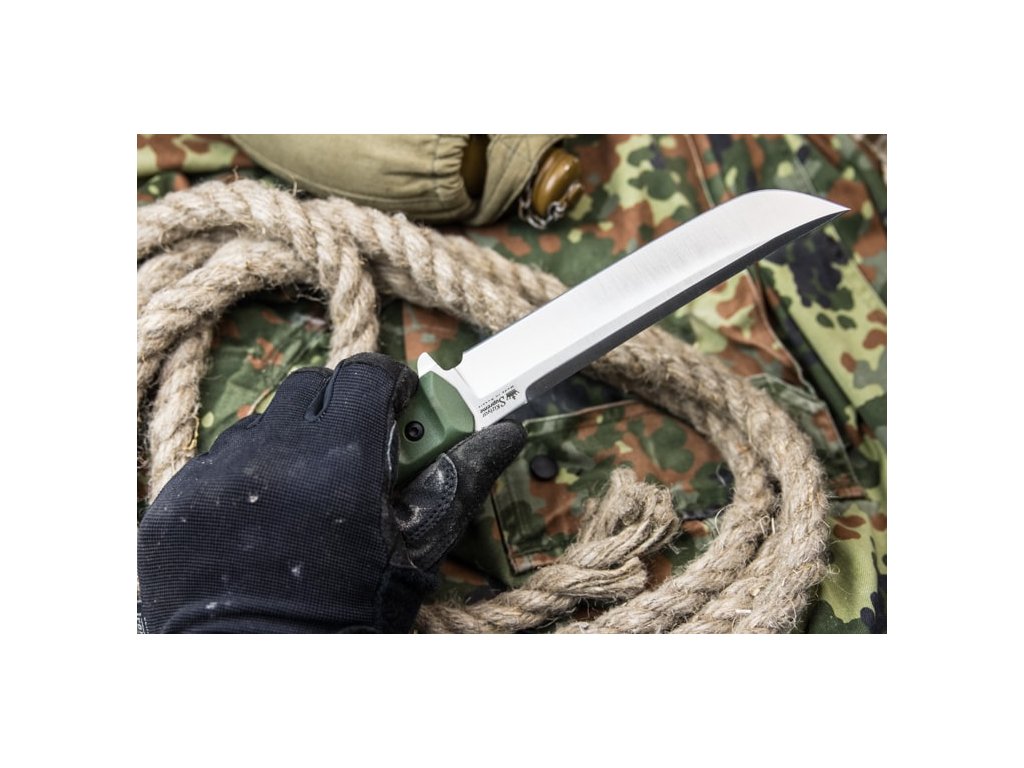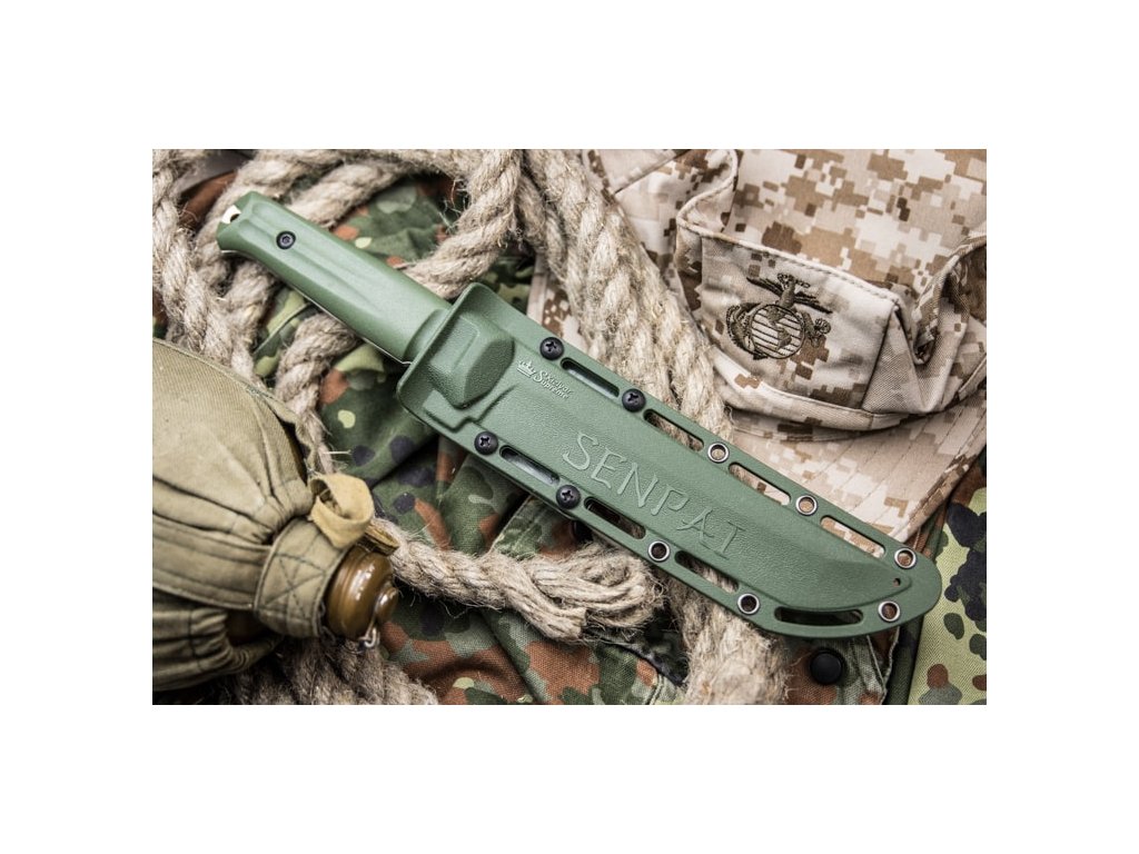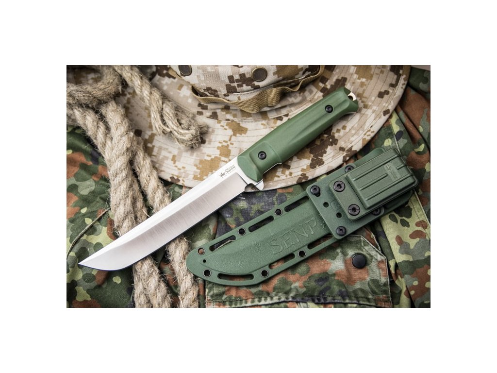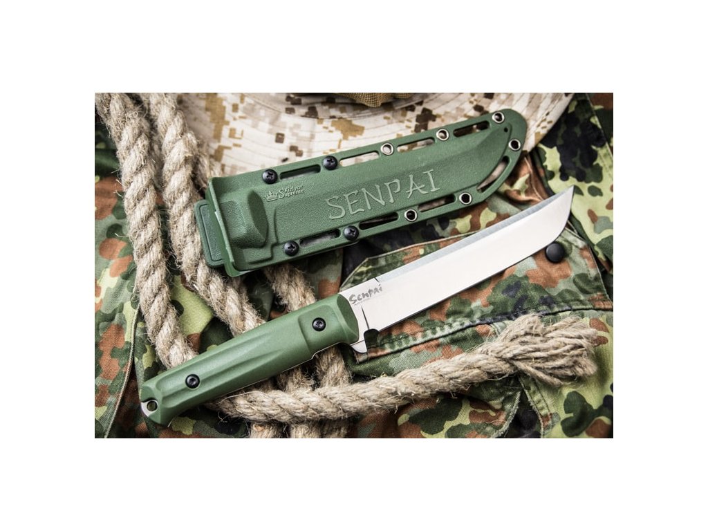 A Kizlyar Supreme Senpai nagy outdoor kés full tang konstrukcióval zöld kivitelezében. A penge hossza 17,1 cm AUS-8 acélból készült, keménysége 57-59 HRC. Két rétegű markolat - az alsó réteget ABS műanyag alkotja, amely biztosítja a markolat szilárdságát. A Kraton markolat felső rétege kellemes tapintású és nagyon ellenálló. A késhez műanyag tok tartozik, amely kompatibilis a Molle rendszerrel.