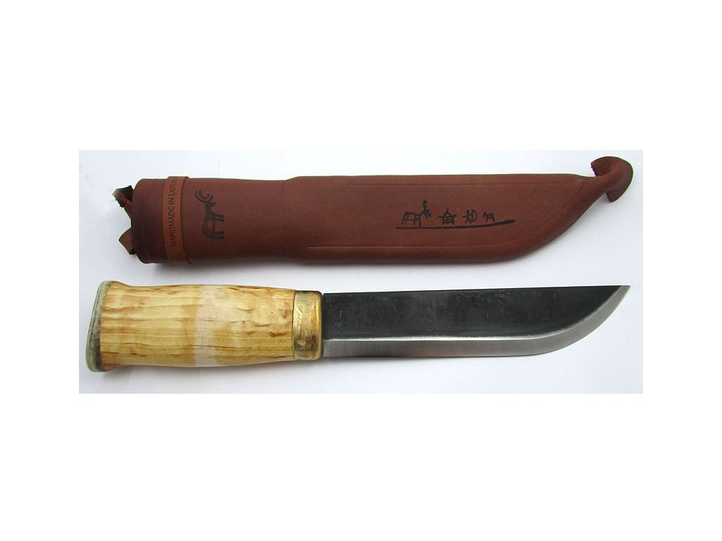 Hagyományos közepes méretű északi Leuku típusú kés. A nyírfa markolaton sárgaréz védő rénszarvas aganccsal szegélyezve. A 17,5 cm hosszú szénacél penge. A késhez egy kiváló minőségű övre akasztható bőrtok tartozik. A szénacél jól tartja az élességet és könnyen csiszolható, de hajlamosabb a rozsdásodásra (a pengét használat után alaposan meg kell tisztítani és megszárítani, valamint tanácsos a pengét időnként olajjal átkenni). A Leuku egy tradicionális szerszám Lappföldön, ahol a mindennapi tevékenységekhez felhasználják, a könnyebb famegmunkáláshoz, például kisebb fadarabok vágásához vagy kéreg eltávolításához, a zsákmány feldolgozásához.