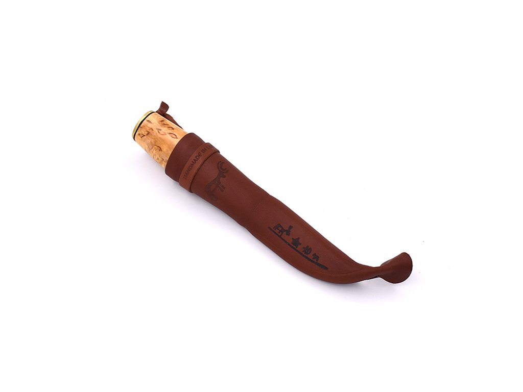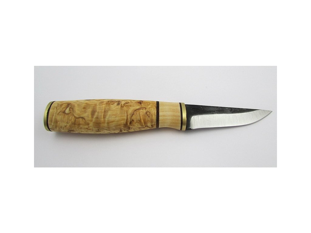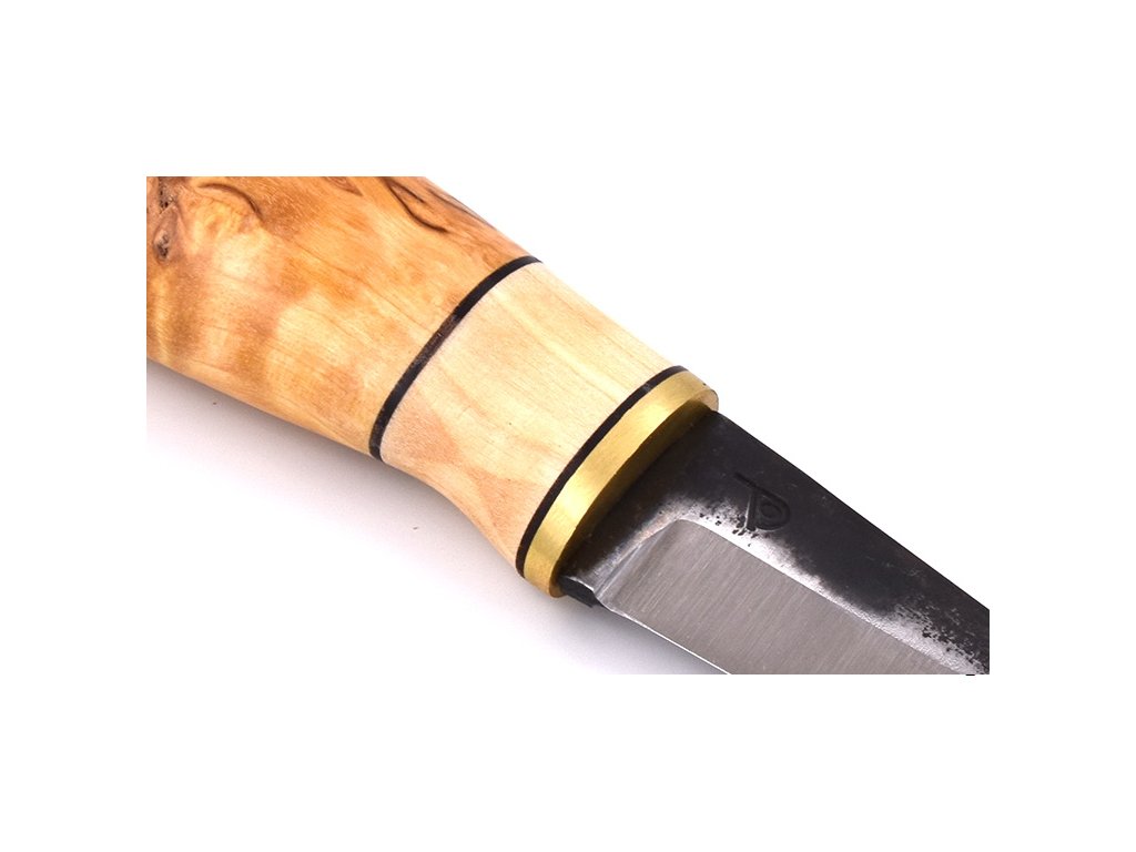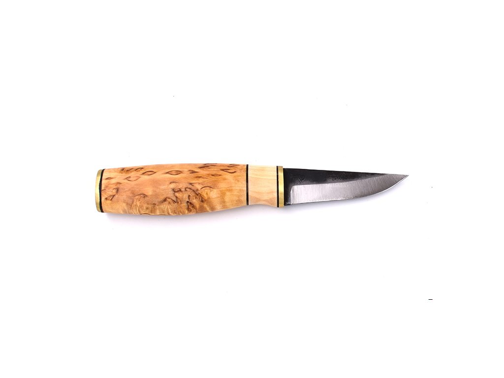 Hagyományos északi kés (puukko), alkalmas a mindennapi tevékenységekhez a természetben, vadászathoz, fafaragásra vagy mindennapi használatra. A markolat nyírfa kombinációja ( göndör nyírfa és közönséges nyírfa) sárgaréz védővel. A 8 cm hosszú szénacél penge. A késhez egy kiváló minőségű övre akasztható bőrtok tartozik. A szénacél jól tartja az élességet és könnyen csiszolható, de hajlamosabb a rozsdásodásra (a pengét használat után alaposan meg kell tisztítani és megszárítani, valamint tanácsos a pengét időnként olajjal átkenni).