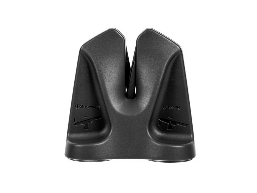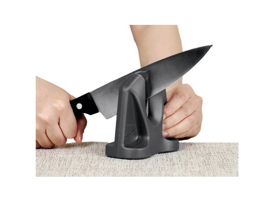 V típusú kézi élező. A volfrámkarbid csiszolómechanizmus mozgatható, és automatikusan beállítja a köszörülési szöget a kés pengéjének megfelelően. & nbsp; A daráló csúszásmentes talppal rendelkezik, és lehetővé teszi a kétoldalas megfogást. A daráló elsősorban konyhai használatra készült, de kis mérete és kis súlya miatt például kempingezésre is alkalmas.