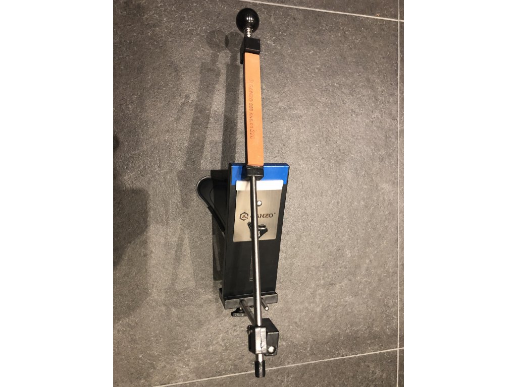 A Ganzo Touch Pro Ultra a Ganzo jobb minőségű késélező szettje. Egyszerűen rögzítse a csiszolót a felülethez tapadókorongokkal. A kés markolata szilárd, és lehetővé teszi a kiválasztott élezési szög fenntartását. A vezérrúdon színesen ki vannak jelölve a csiszolószögek, amelyek átfogják az összes általánosan használt kést - kék szín (24°), sárga szín (21°), zöld szín (18°), piros szín (15°), fekete szín (10°).