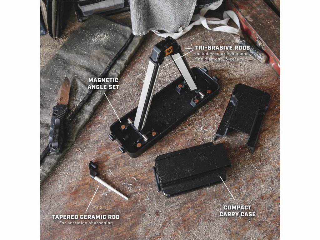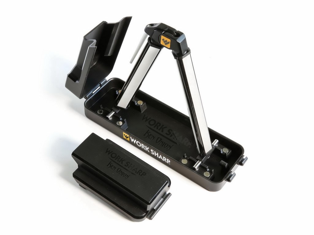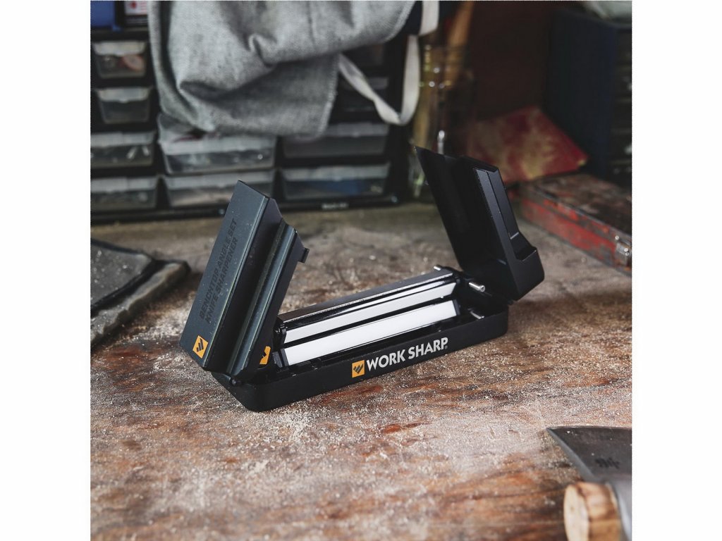 A Work Sharp Ken Onion Angle Set késélező egy átfogó és állítható késélező rendszer. A készlet két háromoldalú élezőkővel van felszerelve. A kövek forgathatóak és három oldaluk különböző szemcsemérettel rendelkezik - durva gyémánt, finom gyémánt és nagyon finom kerámia. A csiszolási szög 15°, 17,5°, 20°, 22,5° vagy 25°-ra állítható. Használat után a készlet kényelmesen összecsukható és egy kompakt tokban tárolható. A készlet könnyen használható, és gond nélkül megélezi a késeket otthon is.