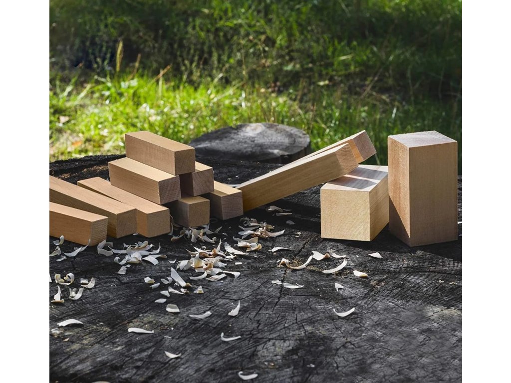 Hársfából készült fakockák készlete. A fa a munka befejezése után festékkel, lakkal vagy natúr olajjal is festhető. A készlet alkalmas mind a tapasztaltabb, mind a kezdő faragók fütyülésére. A készlet 12 darab fát tartalmaz. 2 nagy darab 5 x 5 x 10 cm és 6 közepes méretű darab 2,5 x 2,5 x 15 cm és 4 kis darab 2,5 x 2,5 x 10 cm.