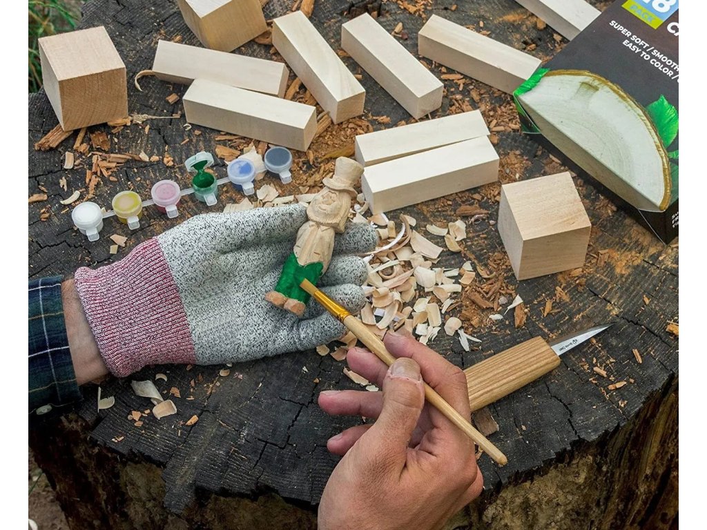 Hársfából készült fakockák készlete. A fa a munka befejezése után festékkel, lakkal vagy natúr olajjal is festhető. A készlet alkalmas mind a tapasztaltabb, mind a kezdő faragók fütyülésére. A készlet 18 db különböző méretű fatömböt tartalmaz. 12 db 2,5 x 2,5 x 10 méretű blokk és 6 db 5 x 5 x 5 cm méretű kockafa tömb.