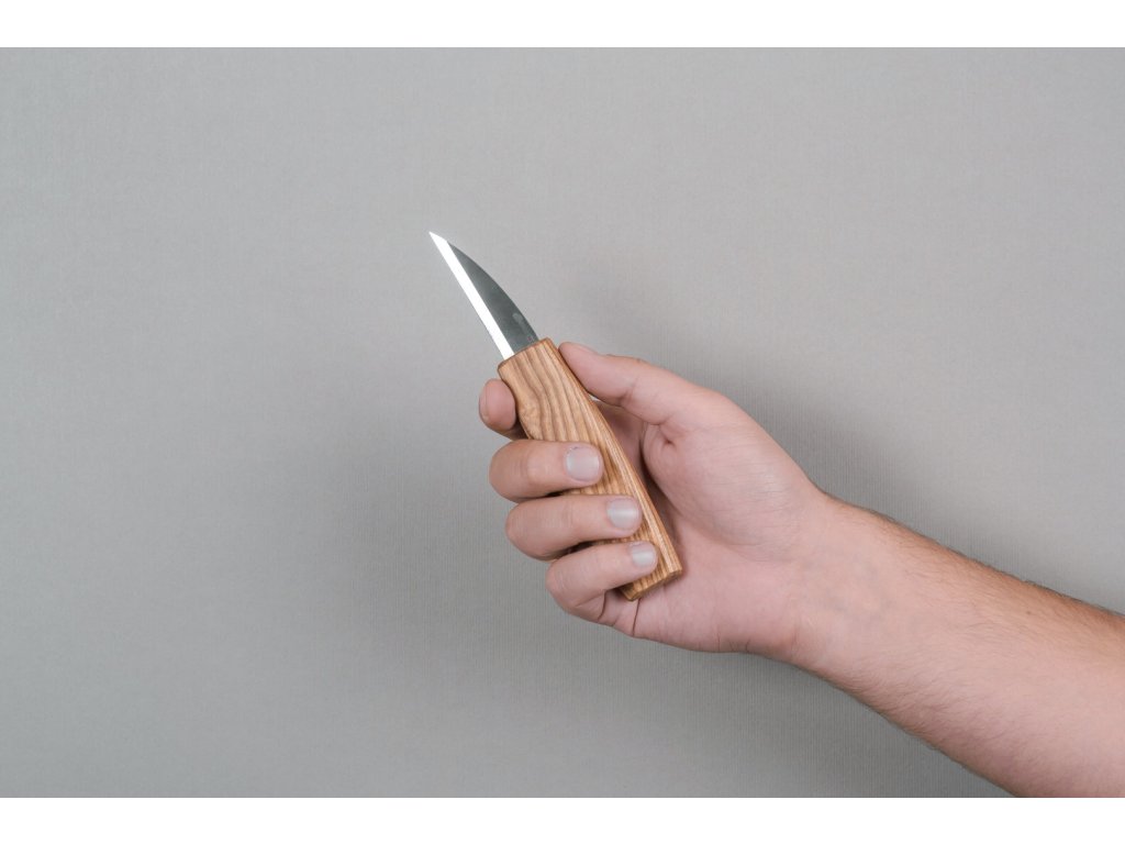 Univerzális famegmunkáláshoz és faragáshoz tervezett kés. 57 - 59 HRC keménységig edzett szénacél penge. A szénacél sokáig éles és könnyen csiszolható, de inkább rozsdásodásra hajlamos (a kést használat után alaposan meg kell tisztítani és szárítani, a pengét is érdemes időnként olajjal áttörölni). Kőrisfa nyél, lenolajjal impregnálva.