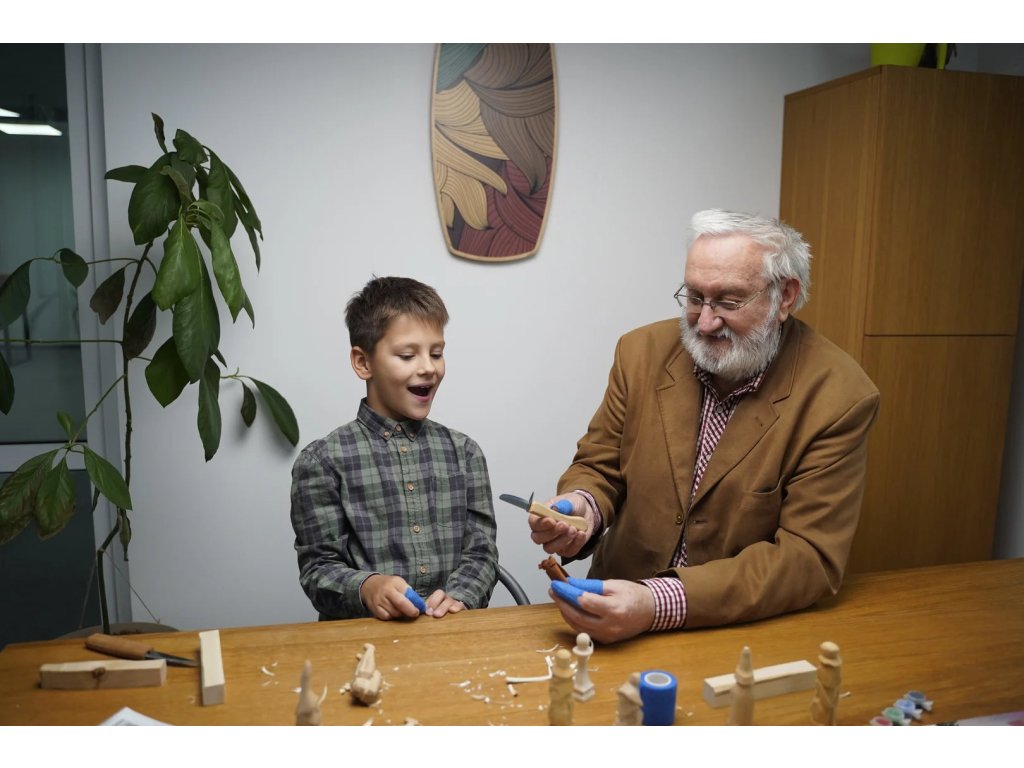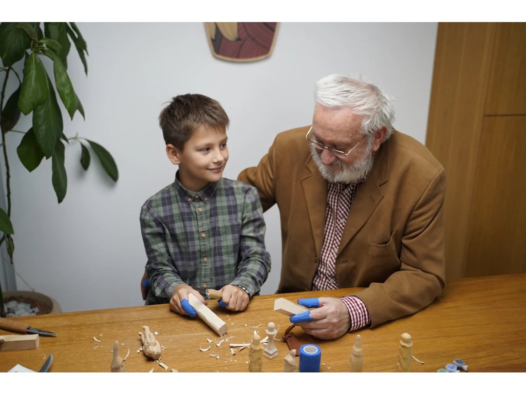 Faragókés gyerekeknek és kezdőknek, amely biztonságos megjelenése ellenére teljesen működőképes és éles robusztus szénacél pengéjének köszönhetően. Elsődleges felhasználását különféle műalkotások és figurák faragásakor találja meg, amelyekbe gyermekei könnyedén életet lehelnek. Azonban a műhelyben sok más kreatív munkával is segítheted magad. Ennek a késnek a pengéje 5 cm, a nyele 10,5 cm. A markolat kőrisfából készült. A penge 65G szénacélból készült, 57-59 HRC keménységig edzett és puha és kemény fával való megmunkálására alkalmas. A csomag tartalmaz még egy bőrvédő tokot és 2 védőszalagot a vágások ellen.