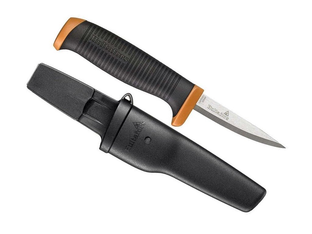 A keskeny és hegyes, 2 mm vastag japán késes szénacélból készült penge előre meghatározza a kést a pontos, részletes vágáshoz, legyen szó faragásról, ácsmunkáról vagy a hegyek finom eltávolításáról vágás vagy fúrás után. A tok büszkélkedhet azzal a lehetőséggel, hogy a munkaruha gombjához rögzíthető, ahol szilárdan fog tartani, vagy az övhöz. A penge 2 mm vastag, késes szénacélból készül, 58-60 HRC-re edzett.