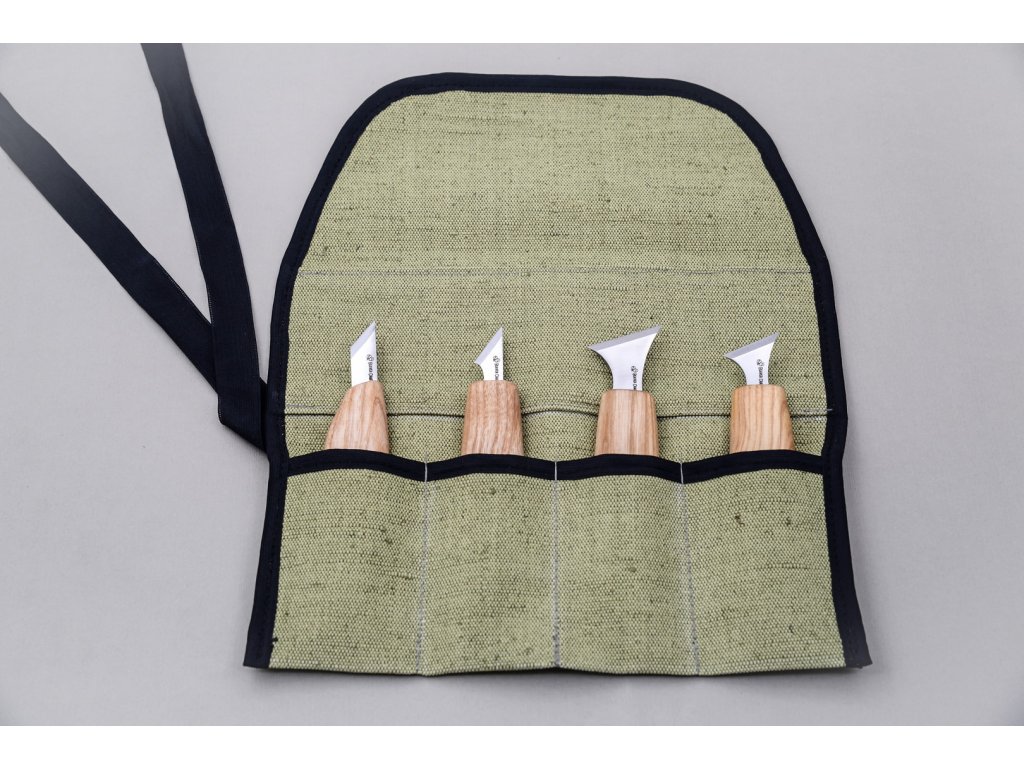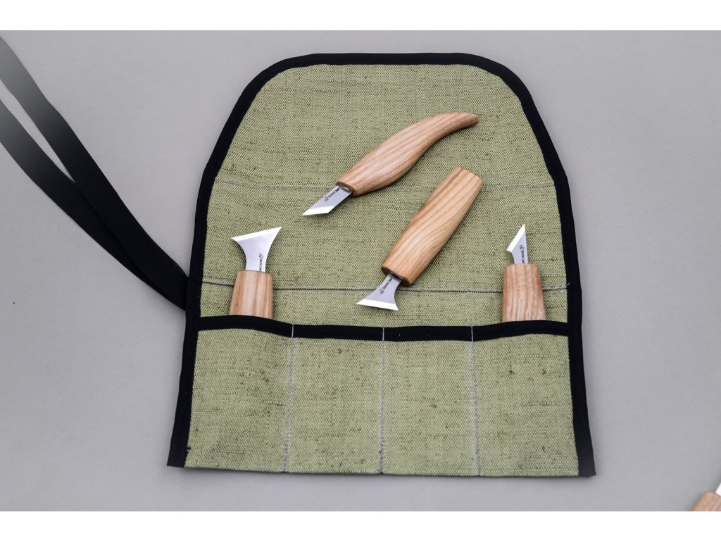 Speciális BeaverCraft faragókések négy részes készlete geometrikus faragáshoz. A kések nagyon élesek, és a kapott vágás nagyon finom, fa sérülése nélkül. 57 - 59 HRC keménységig edzett szénacél pengék. A szénacél sokáig éles és könnyen csiszolható, de inkább rozsdásodásra hajlamos (a kést használat után alaposan meg kell tisztítani és szárítani, a pengét is érdemes időnként olajjal áttörölni). Lenolajjal impregnált kőrisfa nyéllel.