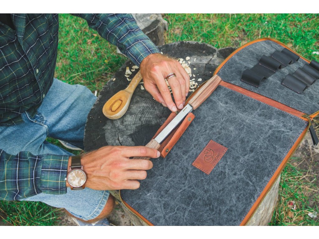 9 darab faragókést és vésőt, bőrt élezéshez és 3 csiszolópasztát tartalmazó készlet. Ennek a készletnek köszönhetően bármilyen faragási ötletet valóra válthat. A készlet késeinek ergonomikus markolata fekete dióból készült. A markolatokat lenolajjal kezelték, amely véd a szennyeződéstől, a felesleges nedvességtől és az anyag kiszáradásától. A faragó szerszámokat a készlet részét képező prémium bőrből készült válltáskában tárolod.