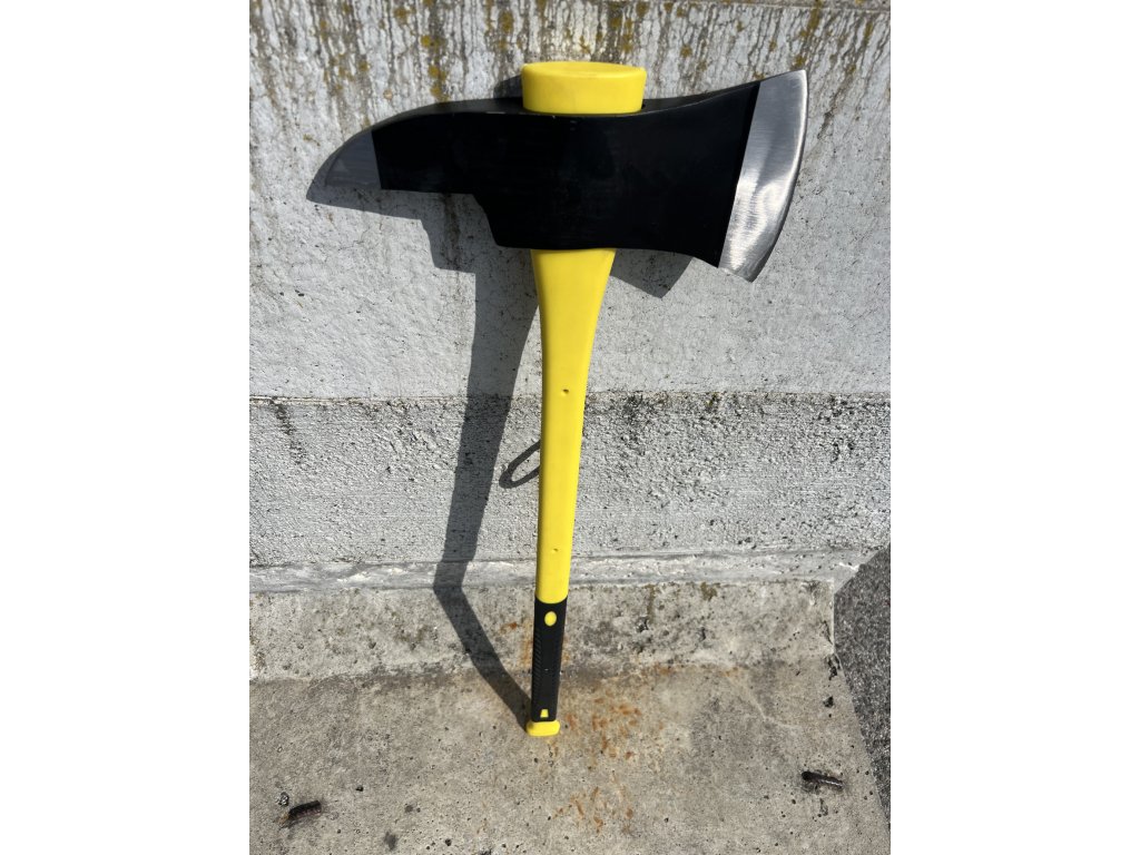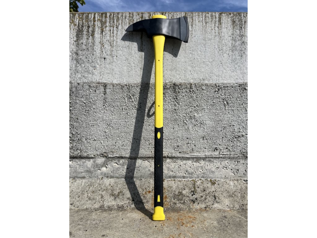 Nagy tűzoltó fejsze, bontó, kétkezes. A fejszefej kézzel kovácsolt C45-ös szénacélból készült, és masszív átszúró tüskéje van. A fejszefej súlya 2800 g. A csatabárd hármas anyagkombinációból készül - polipropilén markolat, üvegszálas mag biztosítja az erőt, az elasztomer pedig szilárd és csúszásmentes fogást biztosít. A tok 90 cm hosszú. A fejsze Olaszországban készült. Professzionális tűzoltó fejsze a legmagasabb minőségben.