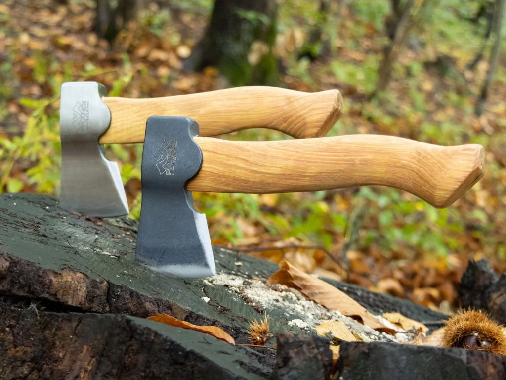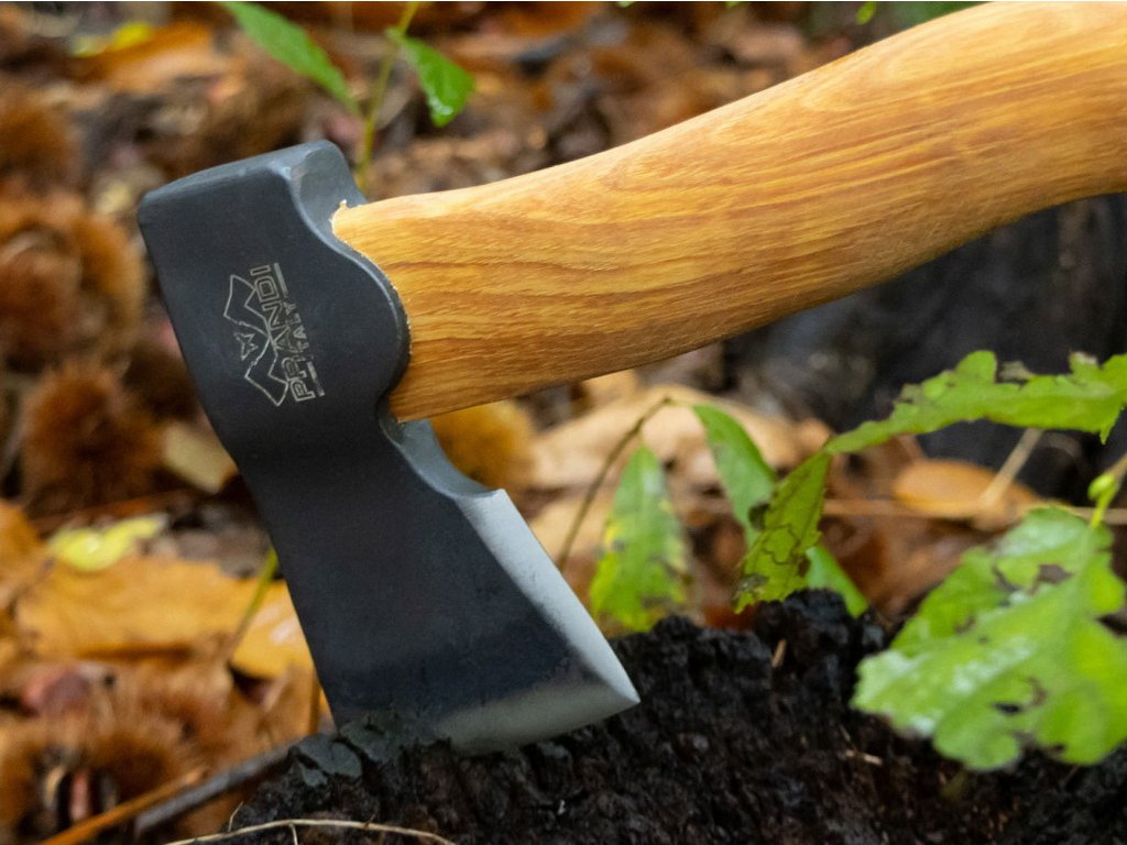 Kültéri fejsze Prandi Segurin természetben való kempingezéshez vagy egyszerű kerti munkákhoz. 28 cm-es hosszának köszönhetően könnyen elfér a hátizsákban, vagy felakaszthatod az övre. A fejszefej kézzel kovácsolt és polírozott C45 szénacélból készült. A fejsze markolat strapabíró hikkori fából (fehér dió) készült, mely formázva és lenolajjal impregnálva van. A fejsze akasztására szolgáló zsinór valódi bőrből készült. A fejszefej súlya 400 g. A fejsze teljesen kovácsolt és Olaszországban készült.