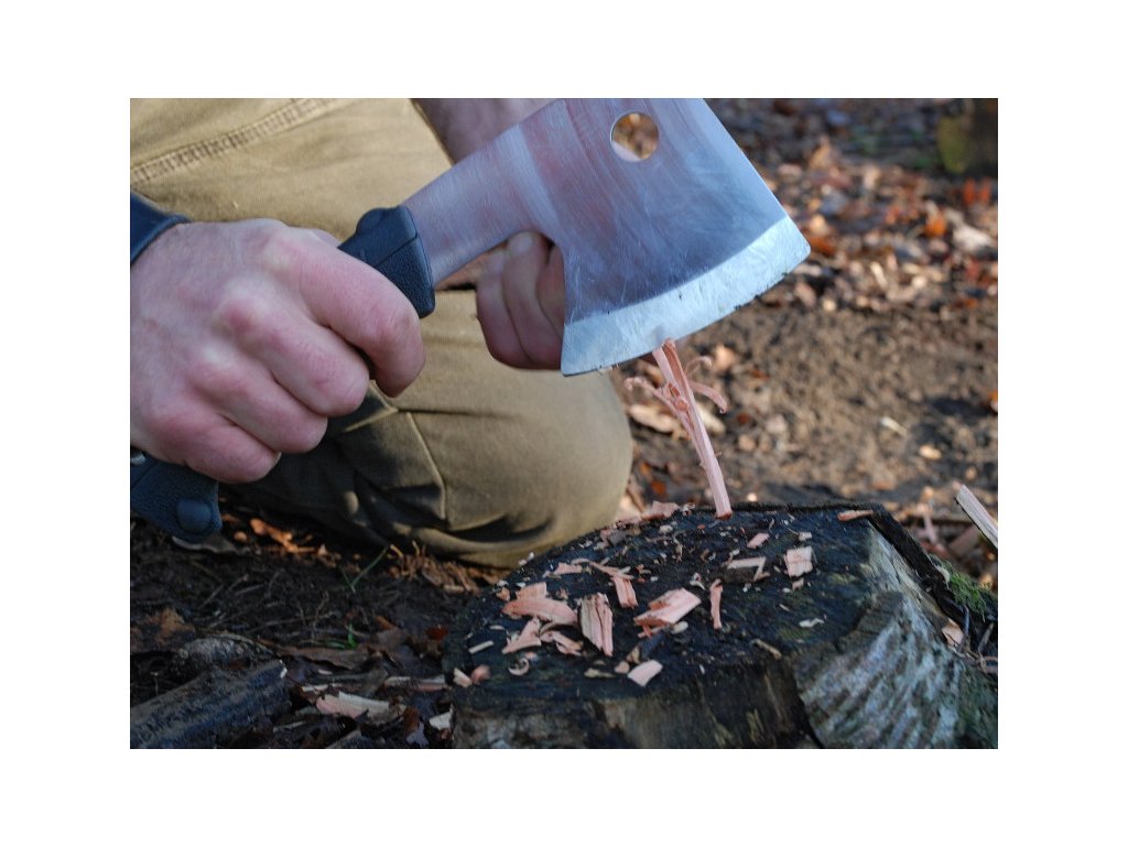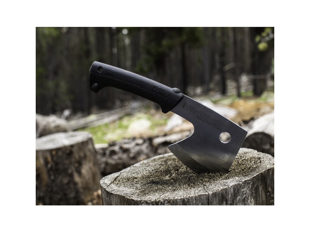 Professzionális kemping fejsze, amelynek szerkezete egy darab acélból készült. Ez a teljes tengelyű fejsze kiváló aprítási irányítást biztosít, ugyanakkor robusztusnak érzi magát. Kis mérete ellenére ez a fejsze 870 g-ot nyom, aminek köszönhetően nehezebb feladatokkal is megbirkózik, mint egy normál könnyű kempingbalta. A fejsze króm felületkezelésen esett át. A Genki markolatja gumiból készült, ami magabiztos fogást garantál, a csúszásnak nyoma sincs kesztyűben vagy puszta kézzel. A fejsze fekete textil tokkal jár.