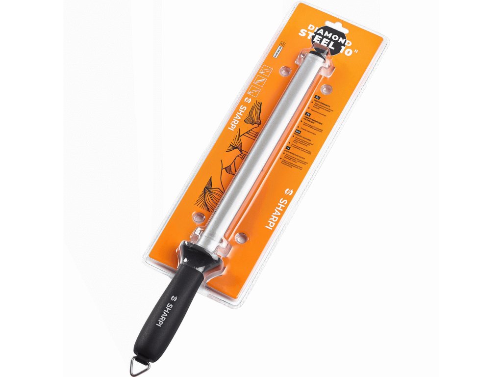 A gyémánt fenőacél segít a kések és szerszámok rendszeres élezésében, és biztosítja azok tartós élességét az otthoni használat során. A csiszolófelület kiváló minőségű fémből készült, amelyet 600-as szemcseméretű szintetikus gyémántszemcsékkel vontak be. Ez lehetővé teszi a kemény acélból készült kések sima és pontos élezését. Az ergonomikus műanyag markolat akasztófüllel rendelkezik, így könnyen tárolható vagy konyhai sínre is felakasztható.