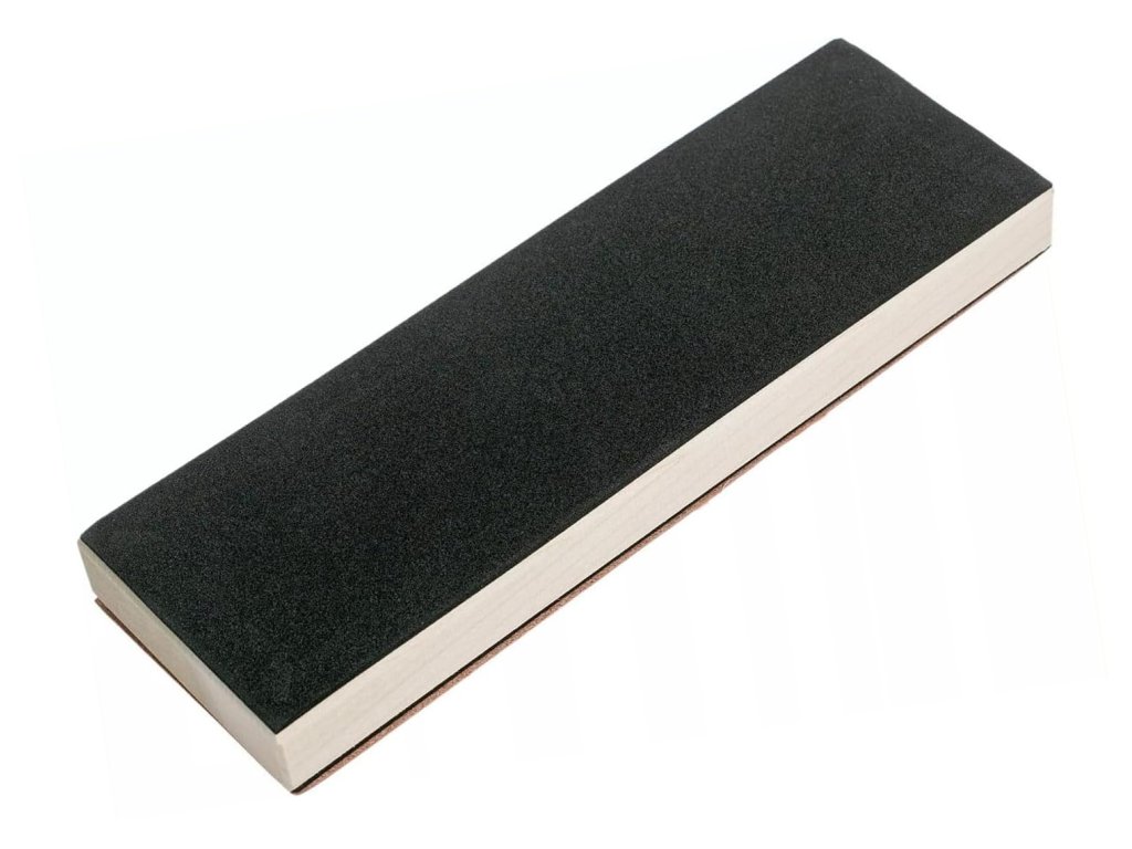 A Naniwa IU-1100 bőr fenőblokk a fenési folyamat utolsó lépéseként szolgál, miután a penge élezése fenőkövekkel megtörtént.