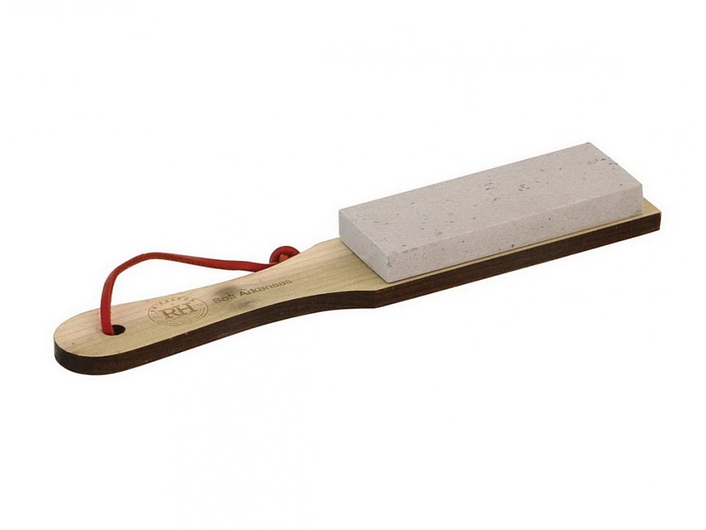 Arkansas természetes puha fenőkő fa deszkára szerelve. A készítmény novakulit (mikrokristályos 99,9% szilícium-dioxid). Nagyon kemény és tartós. Mivel természetes kő, szemcseméretét nem lehet pontosan meghatározni. A Soft Arkansas típus általában 400 - 600 szemcséhez hasonló szemcseméretet ér el. Az arkanasi természetes kő őrlésénél csiszoló olajat kell használni.