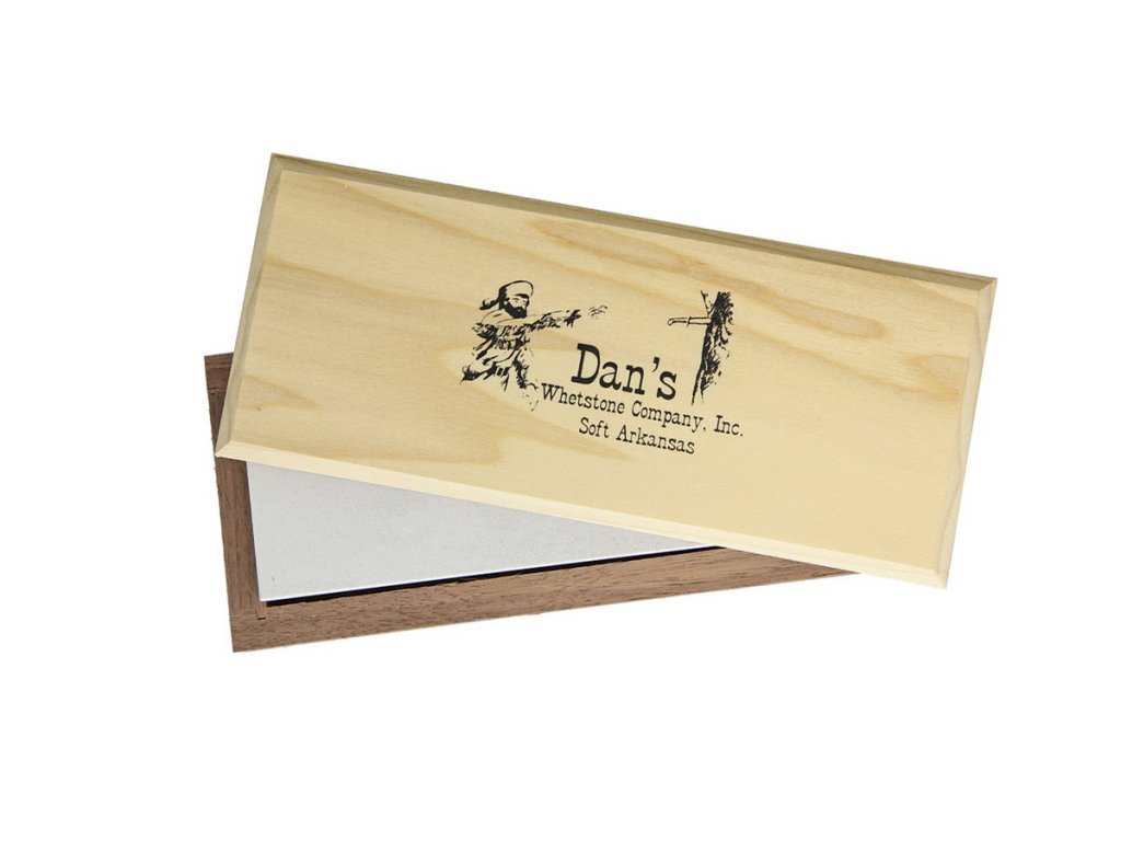 Arkansas-i természetes fenőkő, fadobozban tárolva. A készítmény novakulit (mikrokristályos 99,9% szilícium-dioxid). Nagyon kemény és tartós. Mivel természetes kő, szemcseméretét nem lehet pontosan meghatározni. A Soft Arkansas típus általában 400 - 600 szemcséhez hasonló szemcseméretet ér el. Arkansas természetes kőén történő őrléskor csiszoló olajat kell használni. Méretek: 152 x 50 x 25 mm