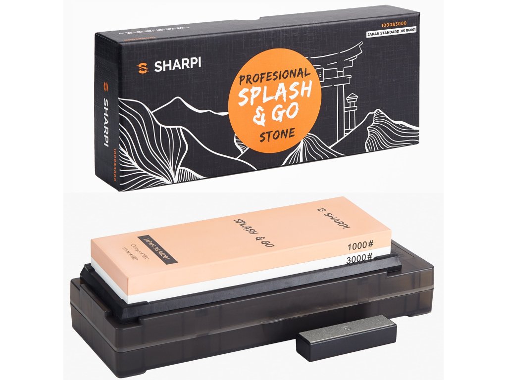 A Sharpi kombinált fenőkő kétoldalas kialakítással rendelkezik, 1000-es és 3000-es szemcseméretben, a japán JIS R6001 szabványnak megfelelően. A 1000-es szemcseméret ideális enyhén életlen élek alapélezéséhez, míg a 3000-es finomság tökéletes a kések és szerszámok polírozásához, finomításához.