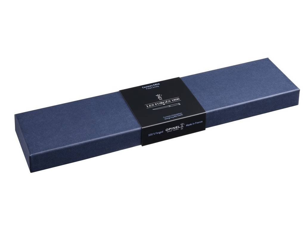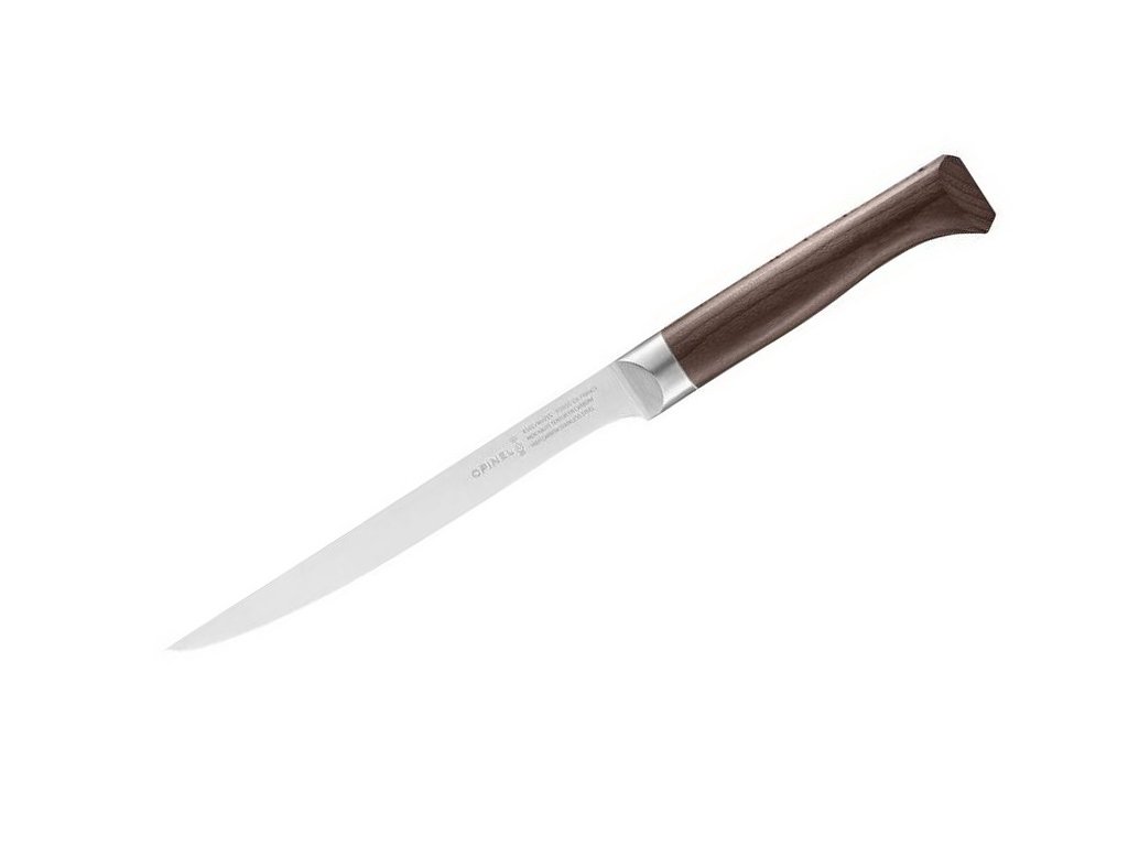 A francia Opinel márka filézőkése a Les Forges 1890 sorozatból. Az Opinel Les Forges 1890 kések az Opinel legjobb minőségű termékcsaládját alkotják. Ezek a kések egyetlen darab X50CrMoV15 rozsdamentes acélból készültek. Ezek úgynevezett integrált kések, amelyek egy darab acélból készült pengével, nyéltámlával és pengegerinccsel rendelkeznek. Ezek a kések szokatlanul erősek, tartósak, tökéletesen kiegyensúlyozottak és kiváló vágási tulajdonságokkal rendelkeznek. Markolat stabilizált sötét bükkfából. Keskeny és rugalmas pengéjének köszönhetően ezt a kést hatékony munkára tervezték halfeldolgozás és filézés során.