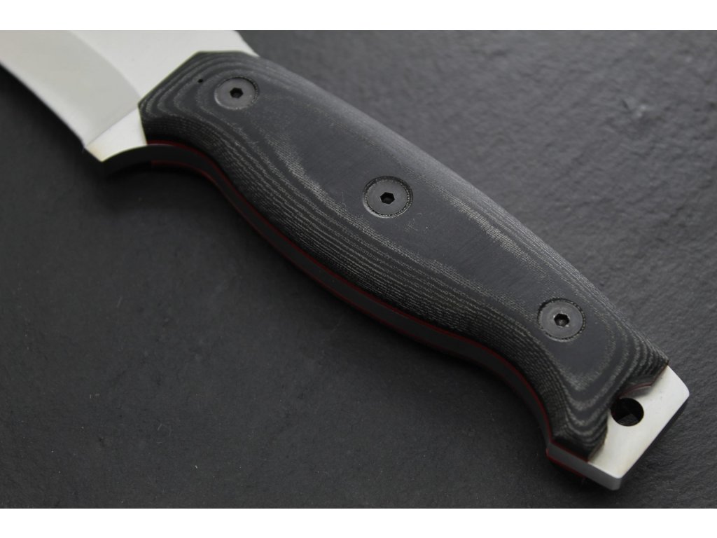A markolat fekete és micarta anyagból készült. A túlélőkések markolatit általában átgondoltan tervezték a kényelem és a fogás érdekében. Tartós anyagokból, például gumiból, fémből vagy szintetikus kompozitokból készülnek, és biztos tartást biztosítanak még nedves vagy igényes környezetben is. Az ergonomikus kialakítás biztosítja, hogy a kés kiegyensúlyozottnak és természetesnek érezze magát a kezedben, lehetővé téve a precíz és ellenőrzött kezelést. A kést megerősített műanyagból készült fekete tokkal együtt szállítjuk.
