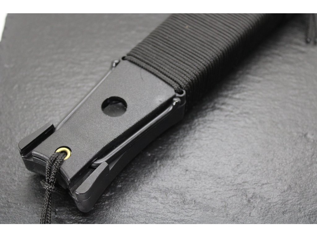 A markolat fekete színű és fémöntvényből készült. A Rambo kés markolatit általában átgondoltan tervezték a kényelem és a fogás érdekében. Tartós anyagokból, például gumiból, fémből vagy szintetikus kompozitokból készülnek, és biztos tartást biztosítanak még nedves vagy igényes környezetben is. Az ergonomikus kialakítás biztosítja, hogy a kés kiegyensúlyozottnak és természetesnek érezze magát a kezedben, lehetővé téve a precíz és ellenőrzött kezelést.