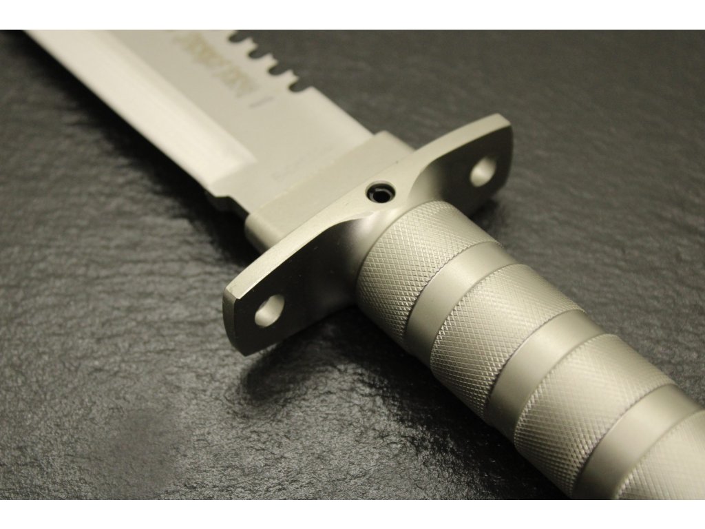 A klipszhegy alakú penge CrMoVa rozsdamentes acélból készült, 20,5 cm hosszú, 5 mm vastagságú. Az acél 55/58 HRC keménységűre van edzve. A kés teljes hossza 36 cm, teljes súlya 1156 g. A kés hátoldalán dupla fűrészlap található.