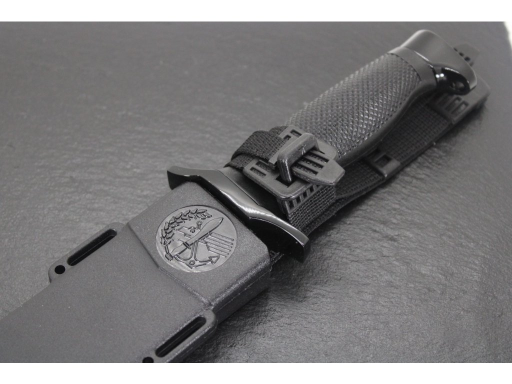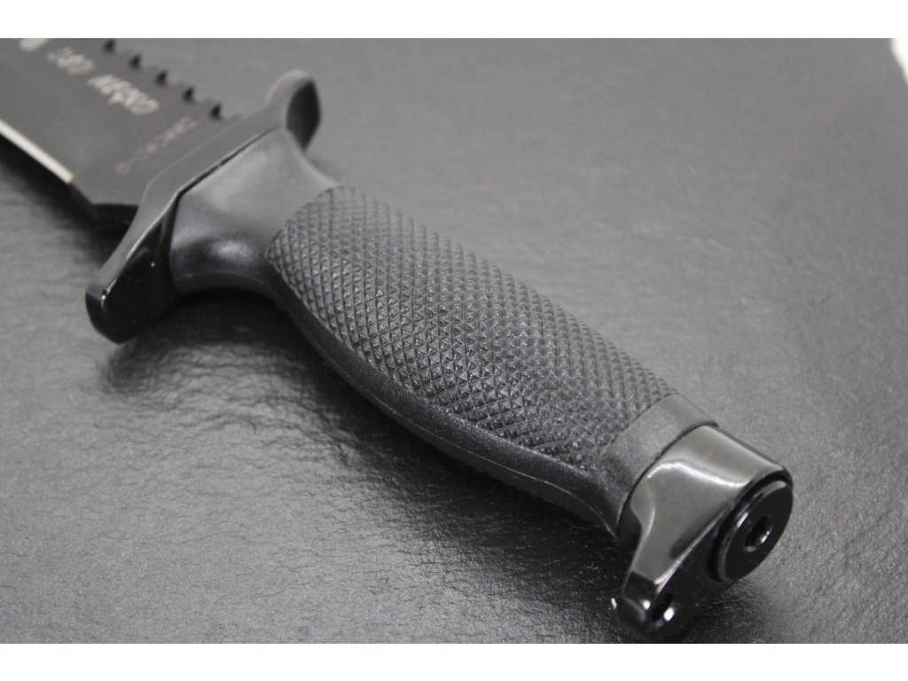 Az Oso Negro kés markolata fekete poliamidból készült, így kényelmes és biztonságos fogást biztosít még a vágási feladatok során is. legigényesebb helyzetekben. A sárgarézből készült védőburkolat és markolatfej további védelmet és egy csipetnyi eleganciát biztosít ennek a kivételes hangszernek. A kés súlya 586 g, és műanyag tokkal érkezik.