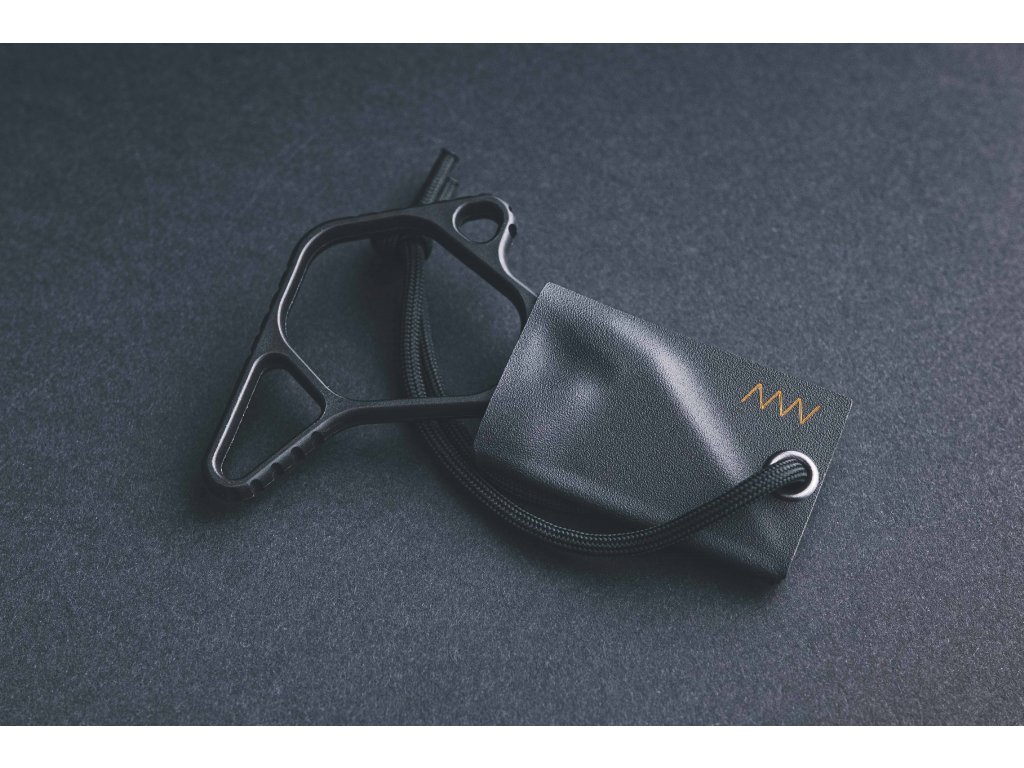 GRN kompozitból készült (üvegszál-erősítésű kemény műanyag), fém por hozzáadásával a biztonság növelése érdekében. A kés súlya mindössze 11,5 g. Kydex tok.
