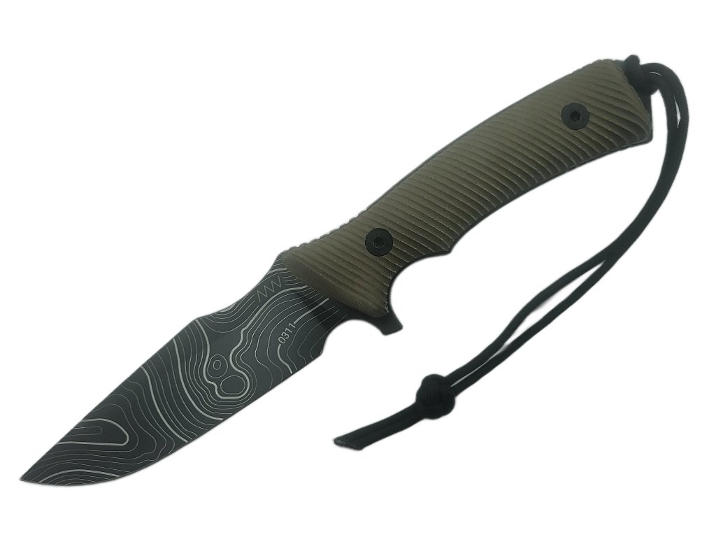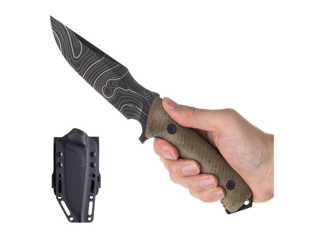 ANV M311 Spelter – Elmax DLC Topo, fekete Kydex tok, olíva Micarta taktikai kés