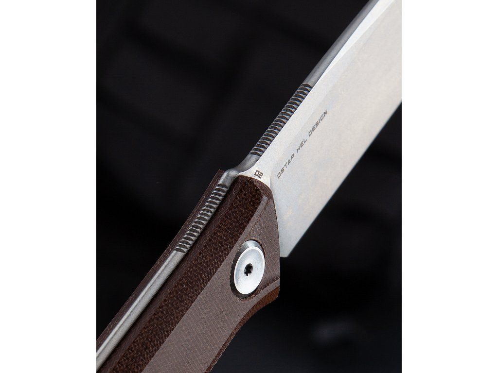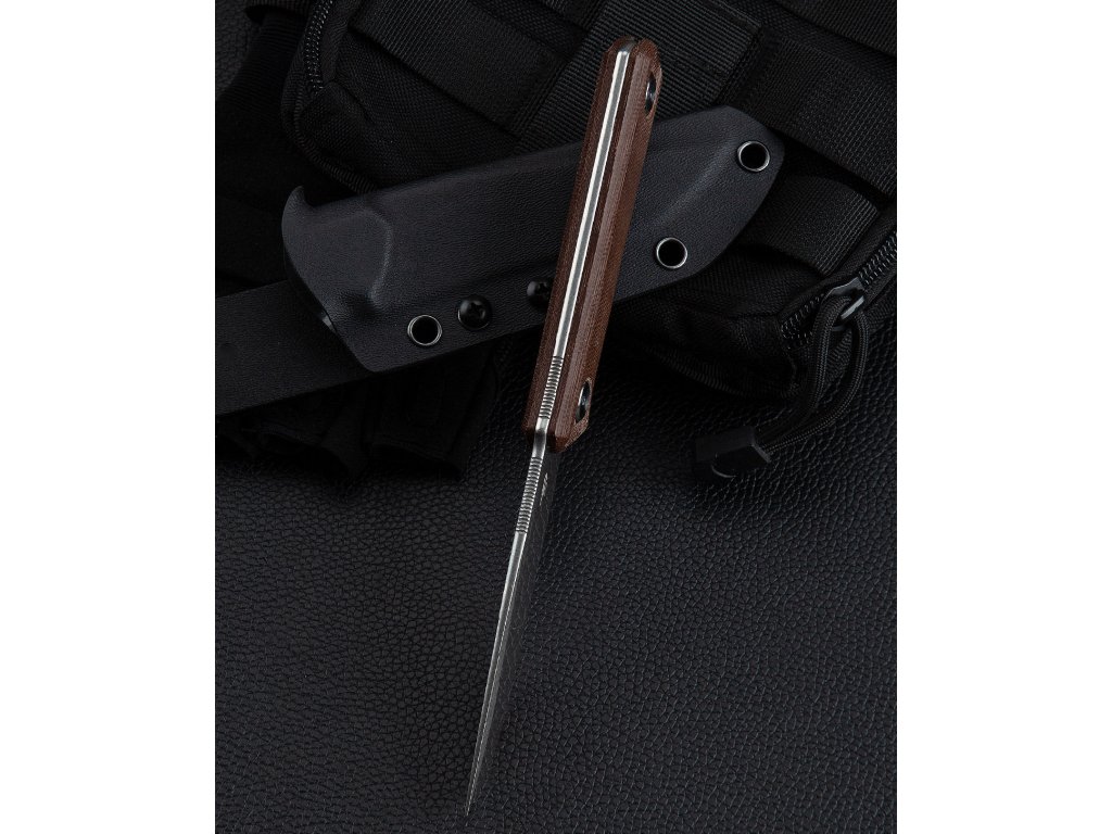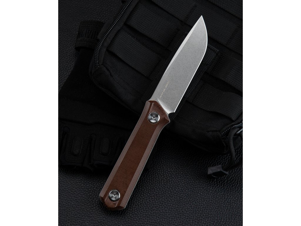 A Bestech Knives Hedron univerzális rögzített kés, kydex tokkal és teljes érintéssel. A D2 drop point szerszámacél lapos élezéssel és 9,6 cm hosszúsággal rendelkezik. A penge stonewash. Markolat barna G10-ből. A késhez kydex tok tartozik.