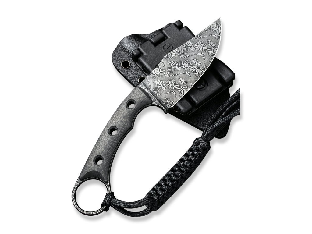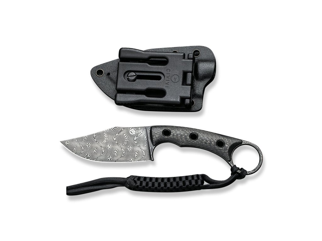 Civivi Midwatch C20059B-DS1 egy kisebb kés fix pengével, mindennapi használatra alkalmas. Az univerzális kés damaszkuszi acélból készült pengéje csíptetős, 8,6 cm hosszú. Közepes méret és magas funkcionalitás teszi a kést a sokoldalú felhasználás kiváló eszközévé. A szénszálas nyél eredeti megjelenést kölcsönöz a késnek.