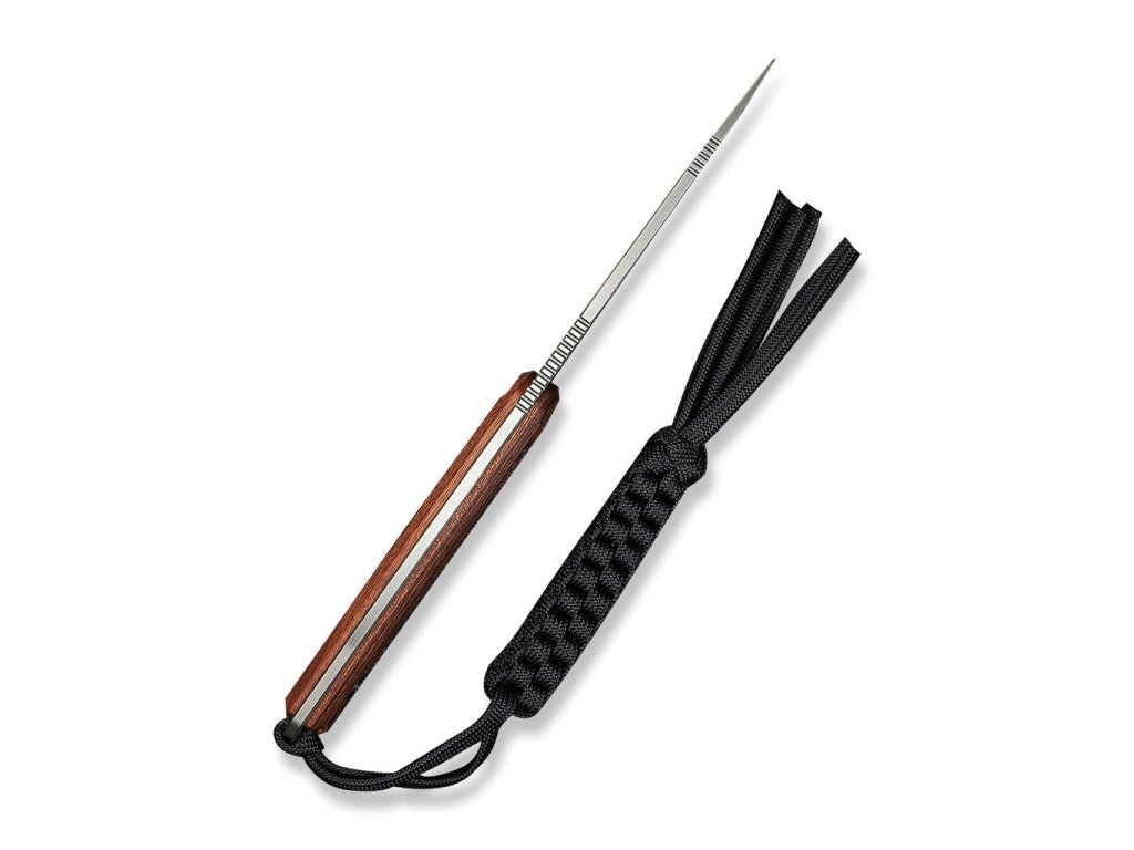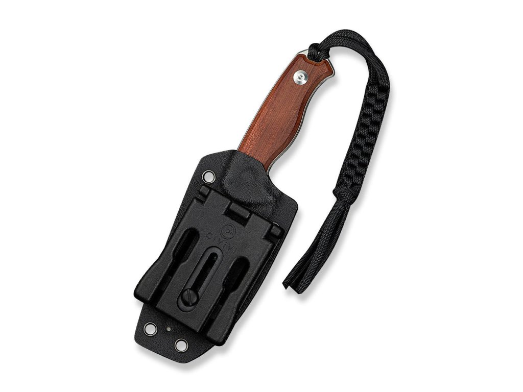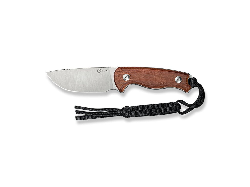 A Civivi Timberbark fixpengés vadászkés kiváló eszköz a mindennapi használatra. Kompakt mérete és könnyű kezelhetősége miatt már az első használat után beleszeret az ember. A penge hossza 8,1 cm, anyaga 14C28N rozsdamentes acél, drop point kialakítással és szatén felületkezeléssel. A markolat egzotikus guibourtia fából készült. A kés teljes hossza 17,5 cm, súlya mindössze 85,7 g.