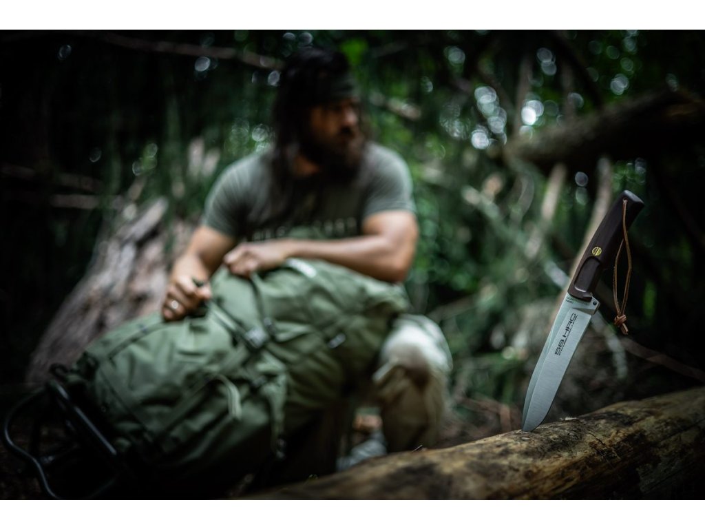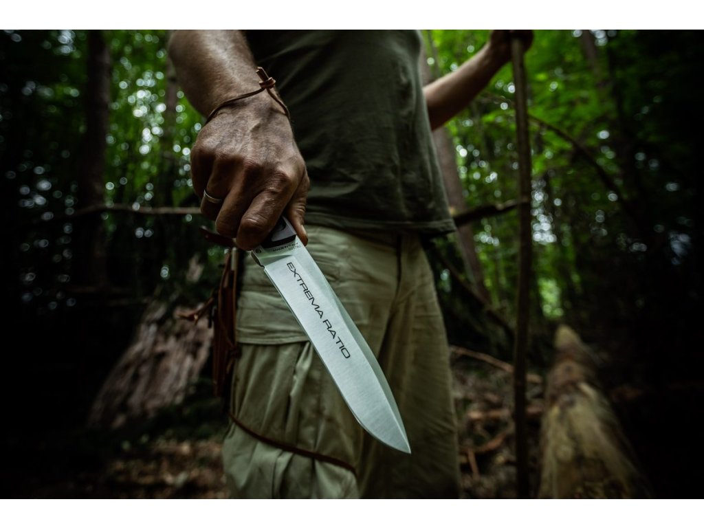 A rózsafa markolat kényelmes fogást biztosít. Előnyben részesíti az egyszerűbb karbantartást? Az Extrema Ratio gondolt erre is – a csomag tartalmaz egy Forprene® műanyag markolatot is, amely jobban tűri a hőmérséklet-ingadozást. Emellett praktikusabb a túlélési felhasználásokhoz, például batoninghoz vagy daraboláshoz, valamint nedves kézzel is jobb fogást biztosít. A két markolat könnyedén cserélhető a mellékelt imbuszkulcsok segítségével. A fa markolat bőr csuklópánttal, míg a műanyag változat paracorddal van ellátva.