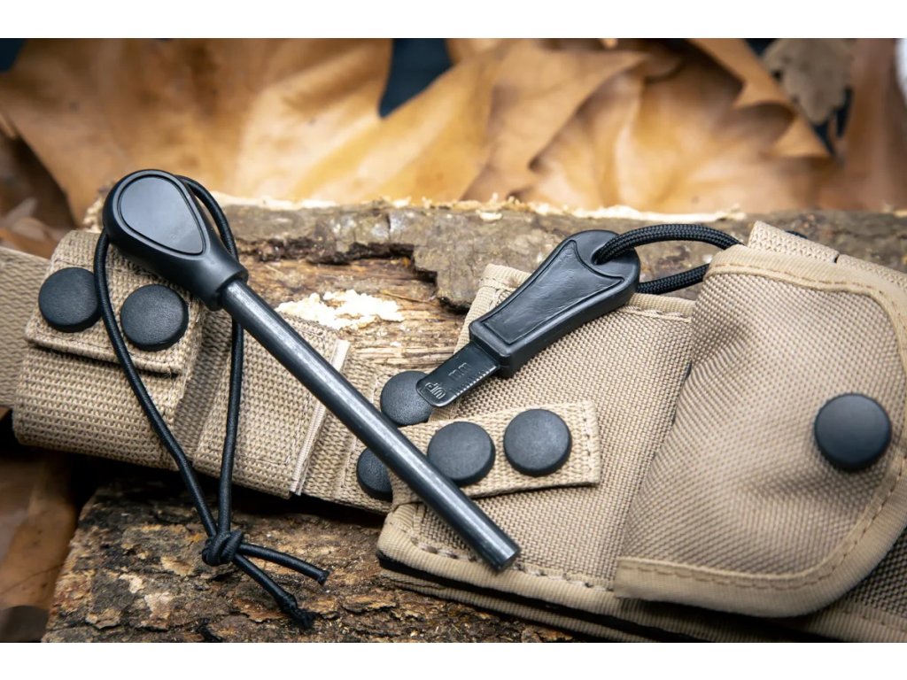 A késhez Molle rendszerű tok, biztonsági vállpánt, tűzgyújtó kő és mini paracord zsákka lángfogó rosttal is tartozik, amelyek vészhelyzetben vagy nehéz időjárási körülmények között is hasznosak lehetnek.