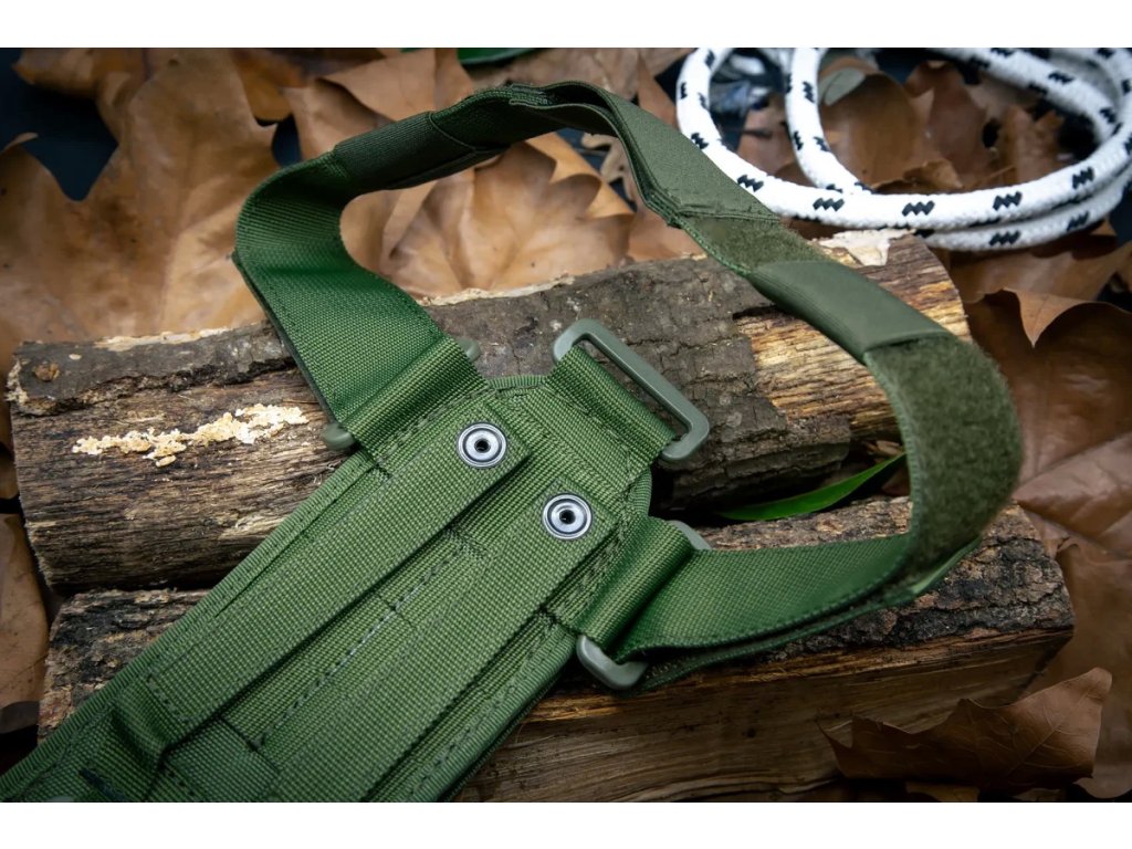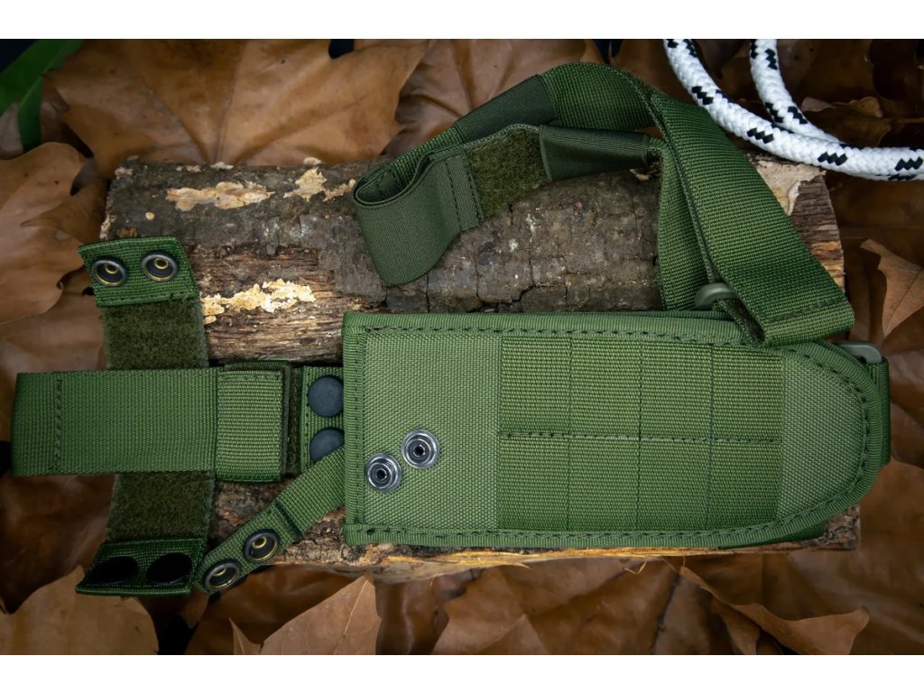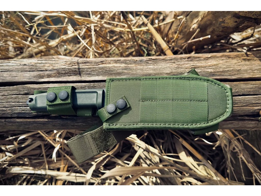 A kés egy zöld színű tokkal érkezik, amely Molle rendszerrel van felszerelve, így könnyedén rögzíthető meglévő felszereléséhez.