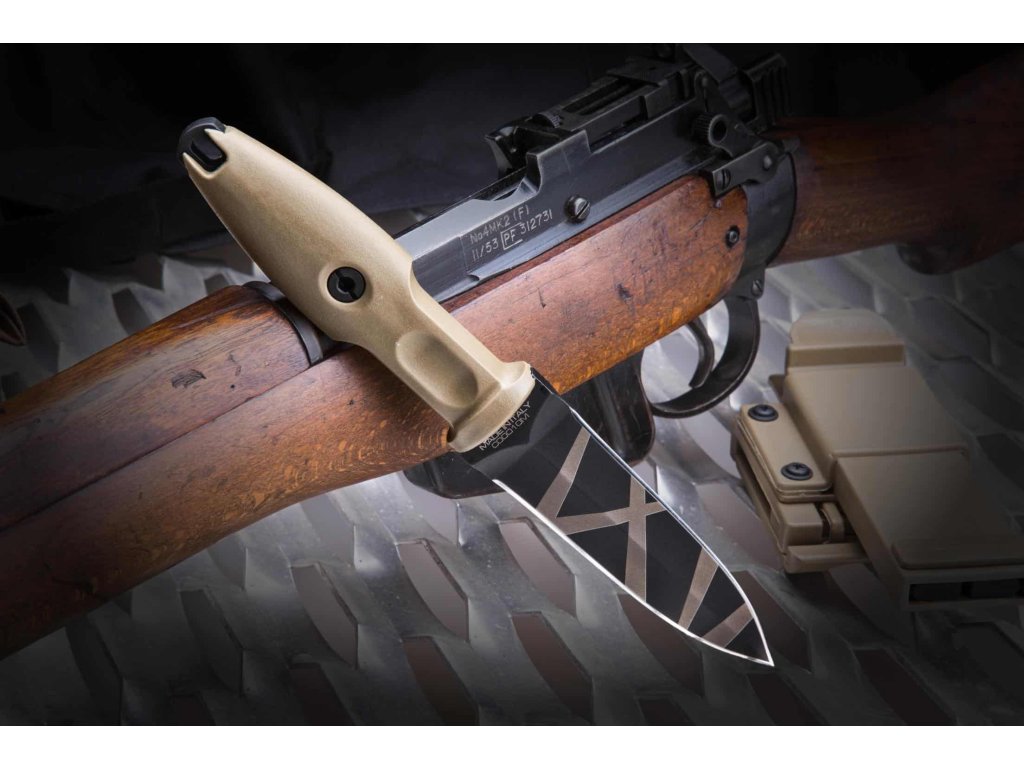A markolat homokszínű nylonból készült. A keresztvédő hiánya gyorsabb kezelést tesz lehetővé készenléti helyzetben. Műanyag tok övcsipesszel, melynél beállítható a kés függőleges, vízszintes vagy 45°-os szögű hordása.