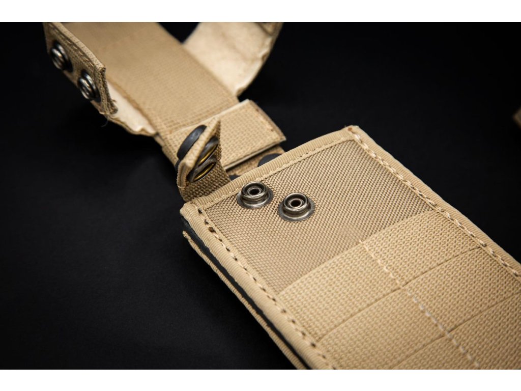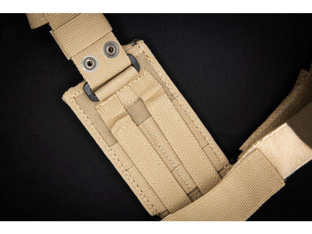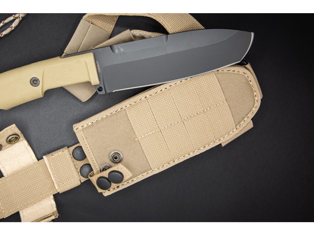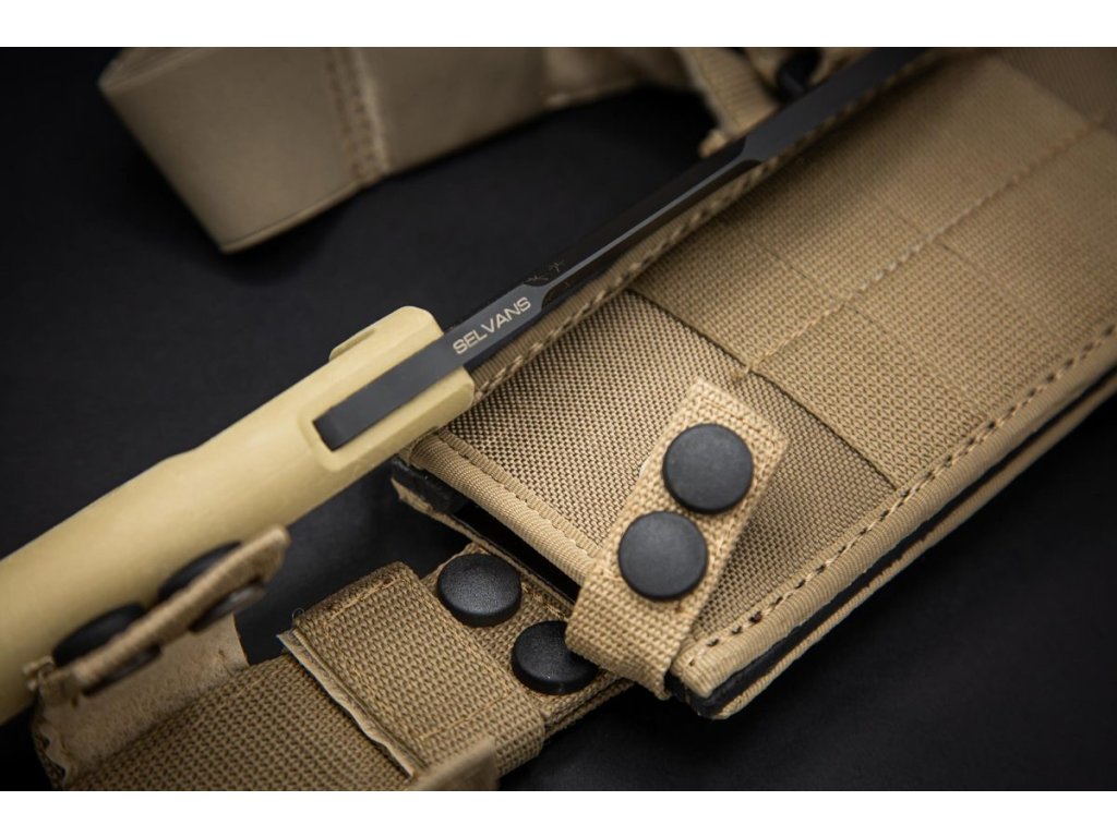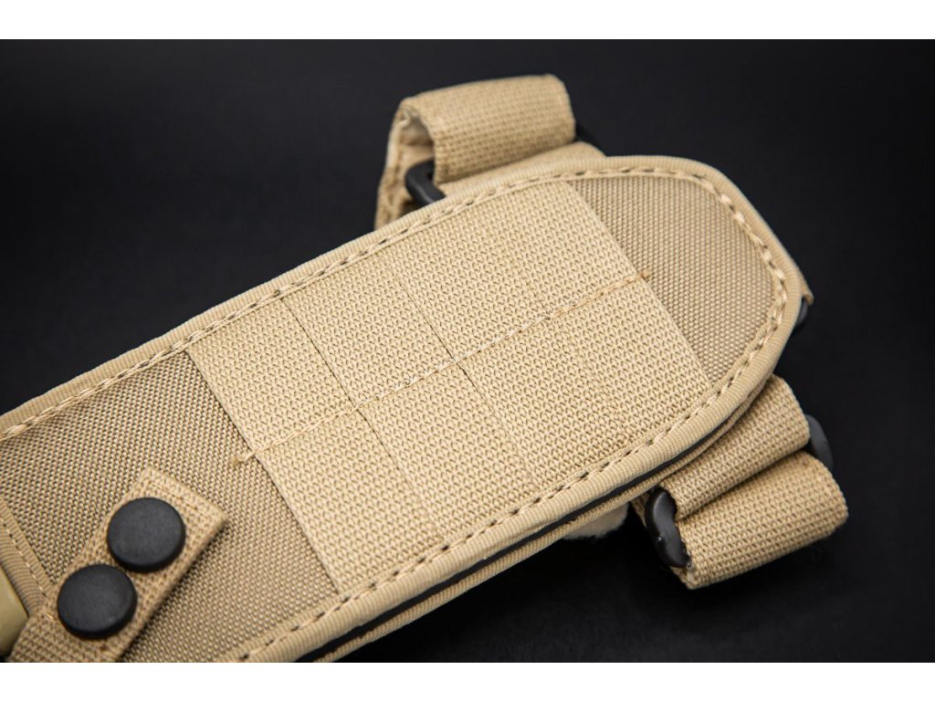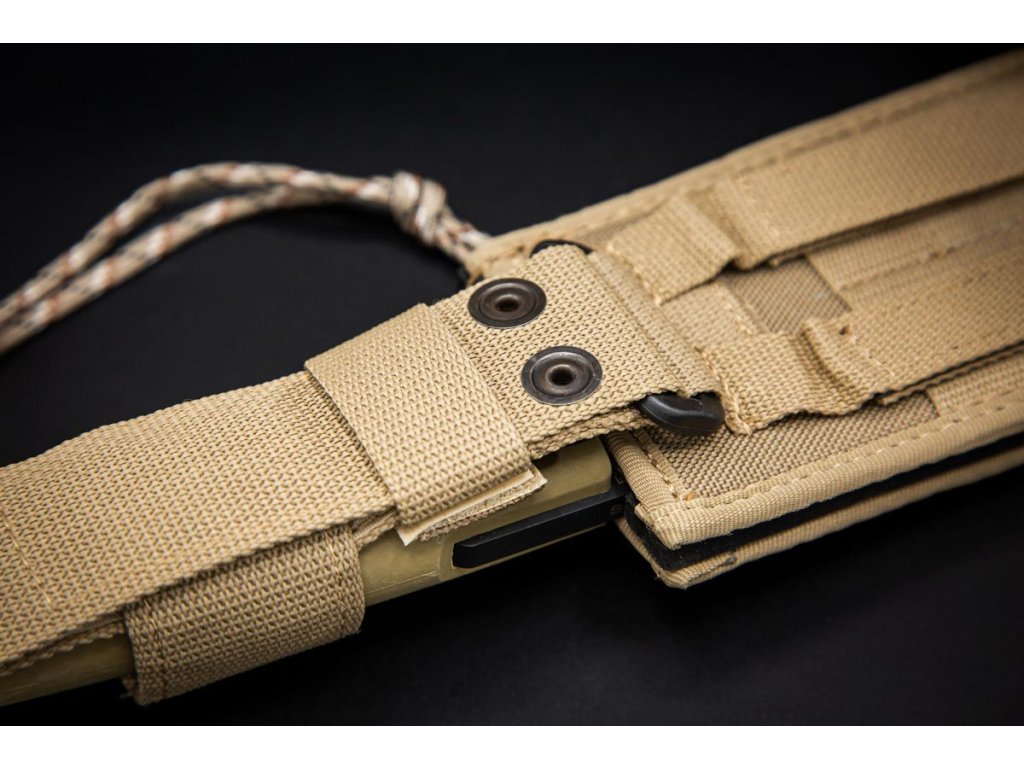 A késhez tartozik egy Molle rendszerű tok, valamint egy biztonsági vállpánt.