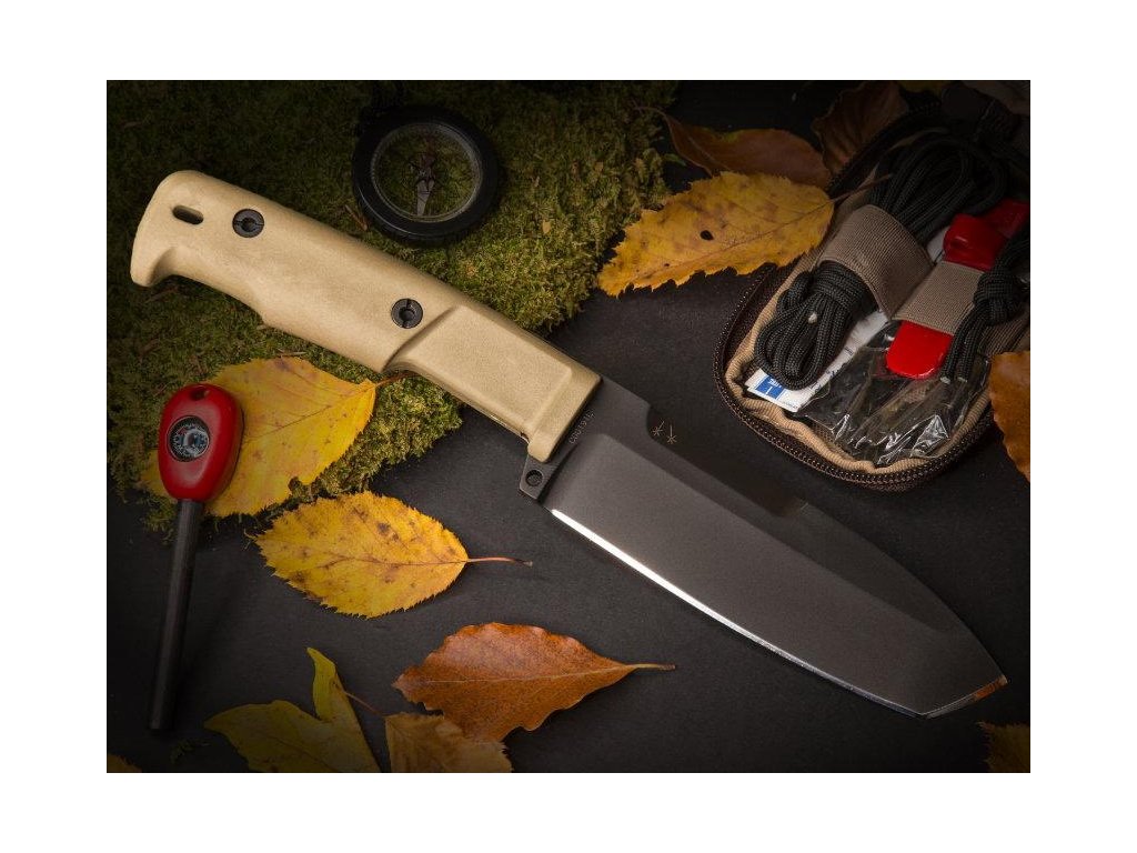 A penge Böhler N690 acélból készült, hossza 16 cm, polírozott, valamint MIL-C-13924 (fekete oxid) bevonattal kezelt. A stonewashed (dark stone) felületkezelés nem csupán esztétikai, hanem védi a pengét a karcolásoktól és ujjlenyomatoktól is. A penge lapos élezésű, keménysége 58 HRC. A keresztvas megakadályozza a kéz előrecsúszását. A penge hátoldalán található rovátkolás segíti a precíz fogást a finomabb munkák során. A hosszabb markolat és a nehezebb penge hatékonyabb aprítást és vágást tesz lehetővé.