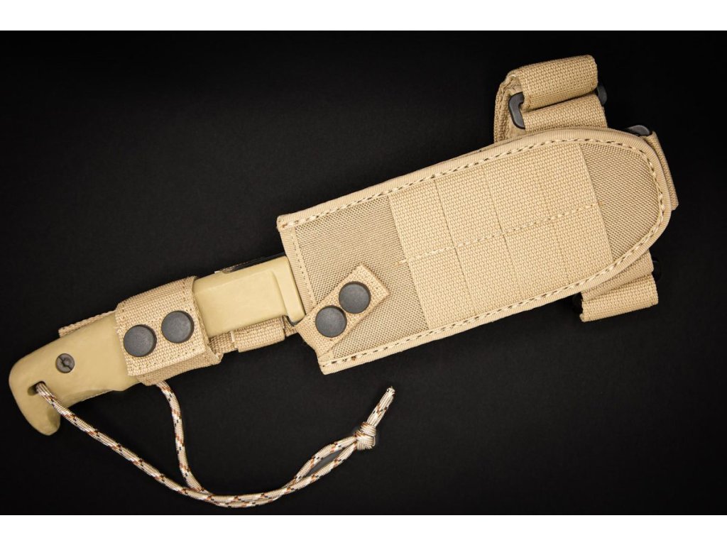 A hosszabb markolat és a nehezebb penge lehetővé teszi a hatékonyabb vágást és aprítást különböző anyagokon. A markolat homokszínű Forprene® anyagból készült – ez a csúszásmentes, rugalmas, gumiszerű termoplasztikus elasztomer kiváló tapadást biztosít még nedves kézzel is. A markolat végén található zsinórlyuk (lanyard hole) lehetővé teszi paracord használatát. A markolat vége kalapácsként vagy üvegtörőként is használható.