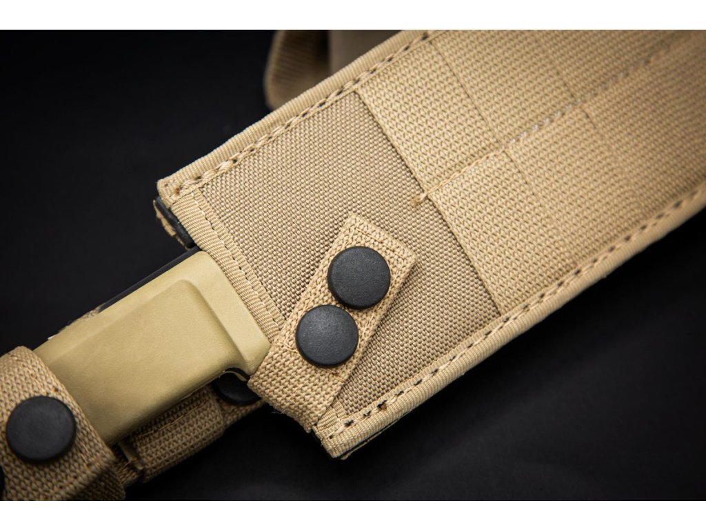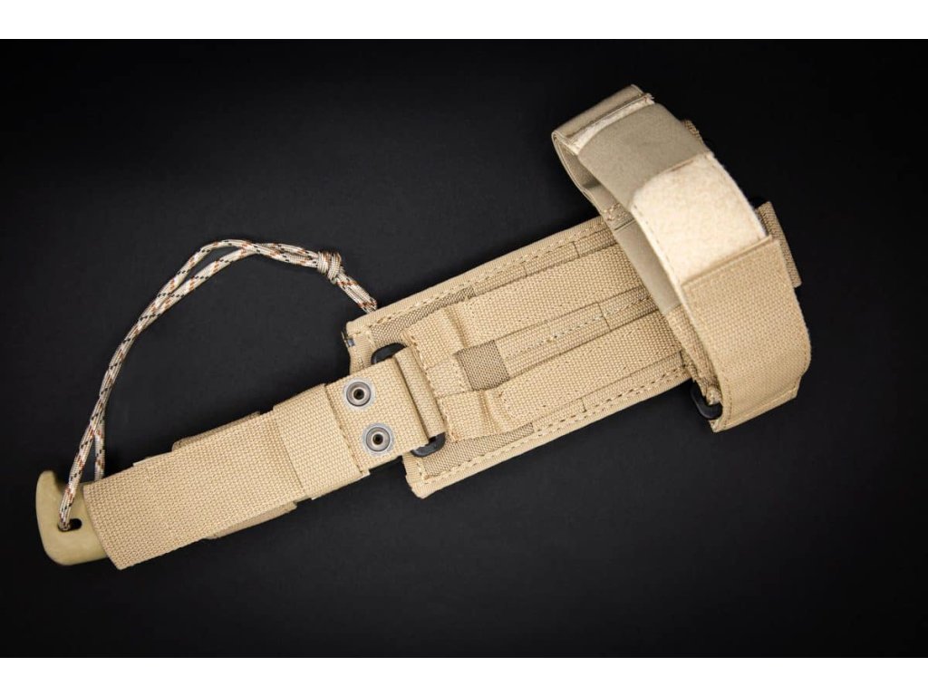 A késhez tartozik egy Molle rendszerű tok, amelyhez biztonsági vállpánt is jár. A csomag része egy tűzgyújtó és egy kis paracord táska gyújtószállal, amely vészhelyzetben vagy extrém időjárási körülmények között is hasznosítható.