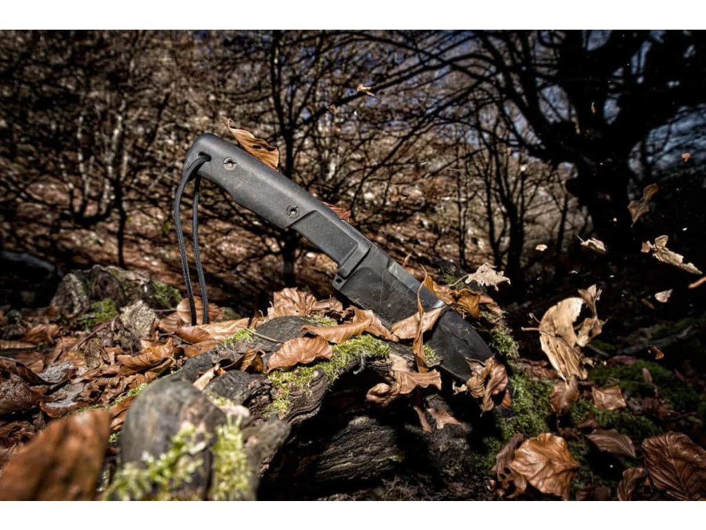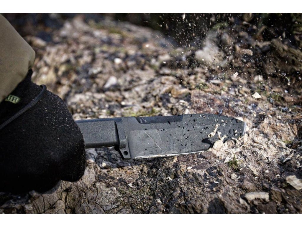 A penge Böhler N690 acélból készült, hossza 16 cm, polírozott, és MIL-C-13924 fekete oxid bevonattal rendelkezik. A stonewashed (dark stone) felületkezelés nemcsak esztétikai célokat szolgál, hanem megvédi a pengét a karcolásoktól és az ujjlenyomatoktól. A penge lapos élezésű, keménysége 58 HRC. A keresztvas védi a kezet a penge felé történő elcsúszástól. A penge felső részén található rovátkolás segíti a biztos fogást a precíziós munkák során. A hosszabb markolat és a nehezebb penge hatékonyabb vágást és aprítást tesz lehetővé.