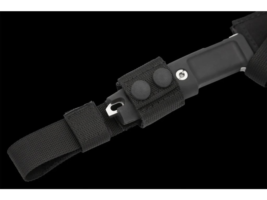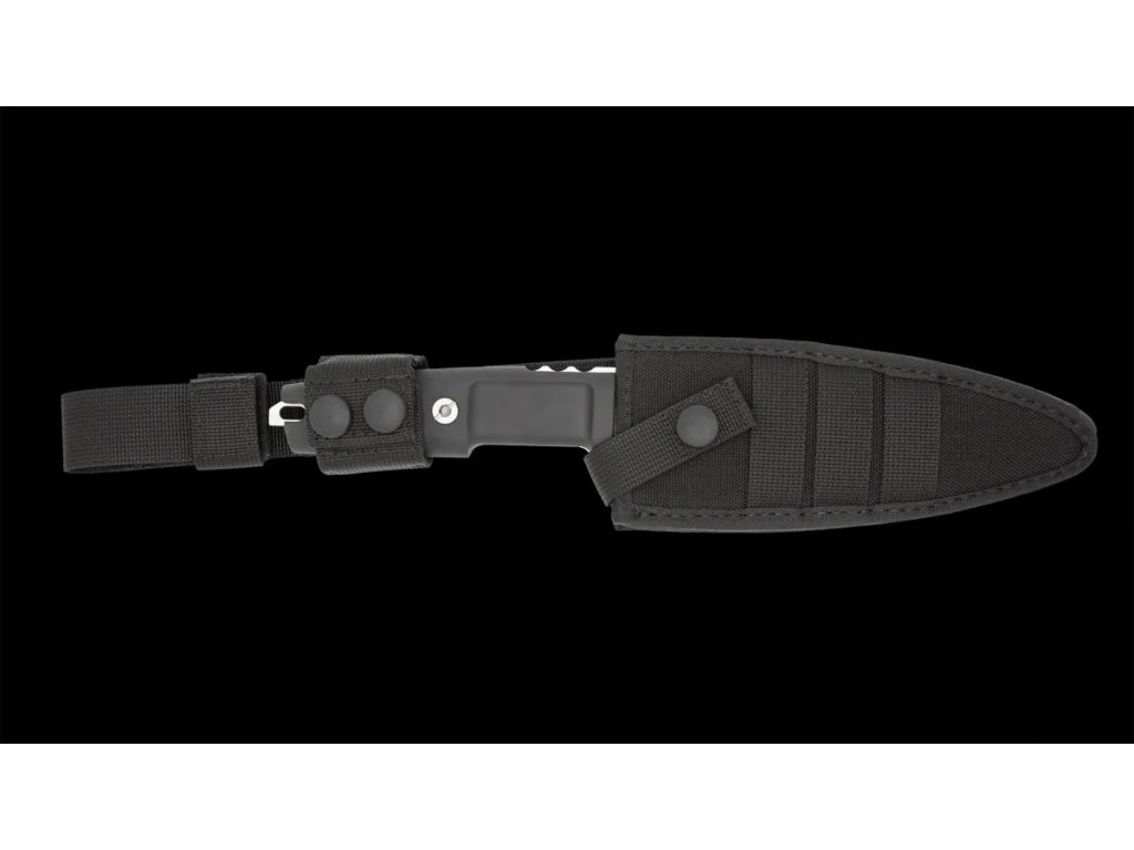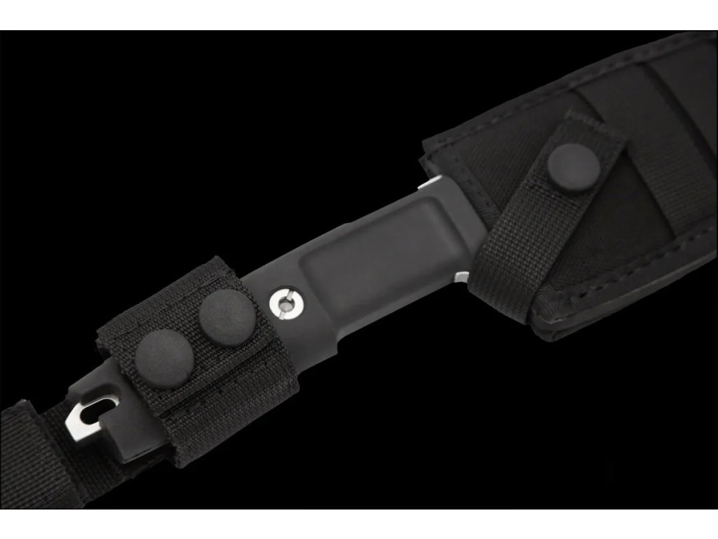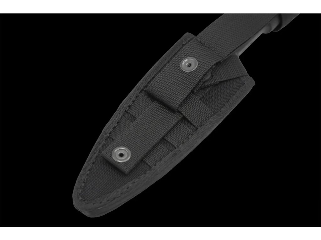A késhez tartozik egy fekete tok MOLLE rendszerrel, amely jobb- és balkezesek számára egyaránt állítható.